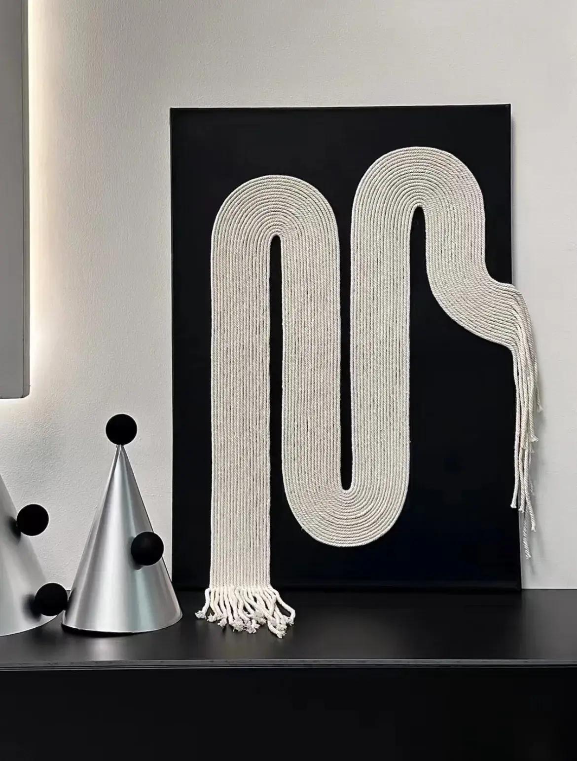 它不需要繁雜的步驟,只需要將麻繩按照一定的圖案粘貼到畫框上就行。