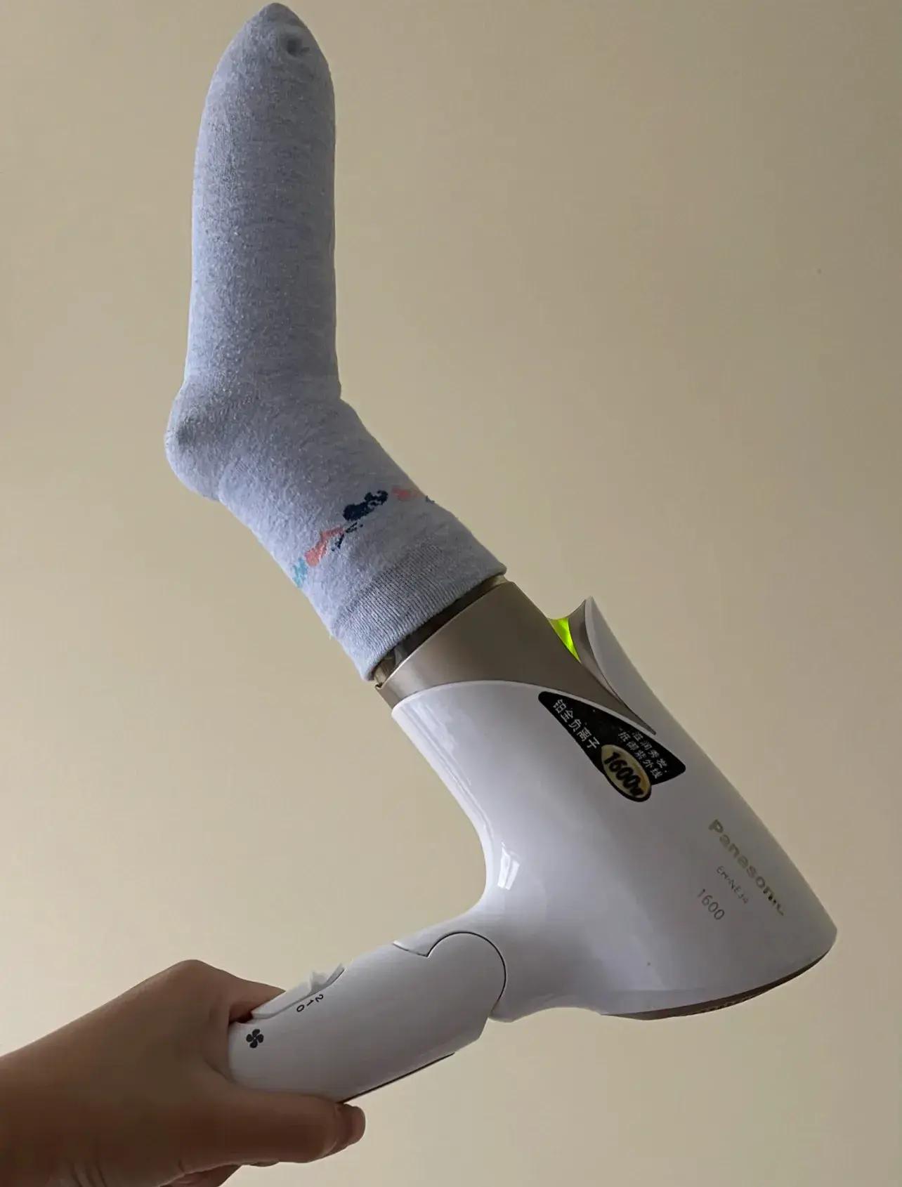 不想穿溼襪子出門,那不妨掏出吹風機,給他緊急吹一下,三兩下給你吹得暖烘烘的穿着很舒服。