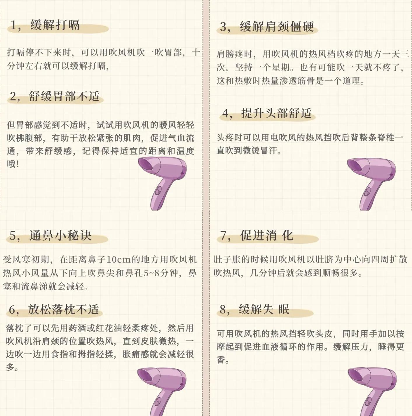 還有我老婆,經常在娃感冒剛開始的時候,用吹風機吹他背部,說是能緩解感冒,咱也不知道真假,反正她就很確信!