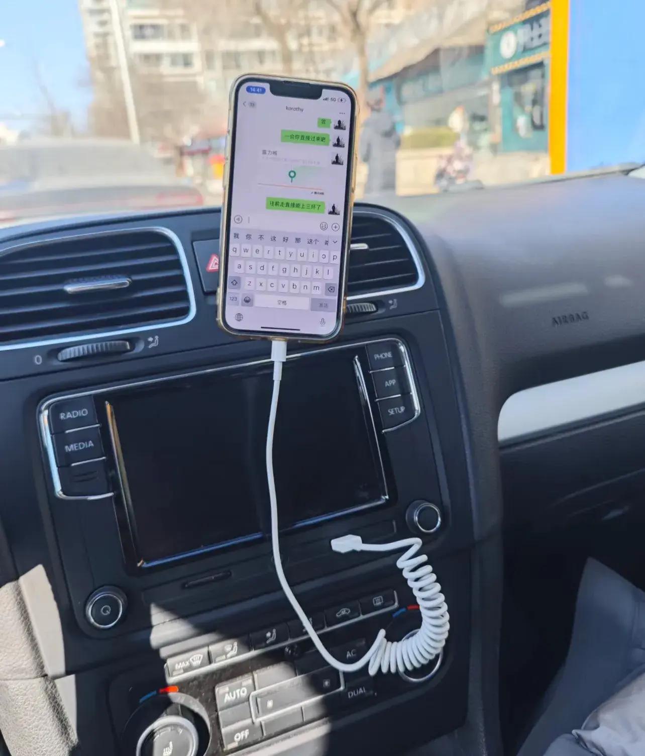 於是一氣之下,我買了根彈簧數據線,用在車上,清爽多了!