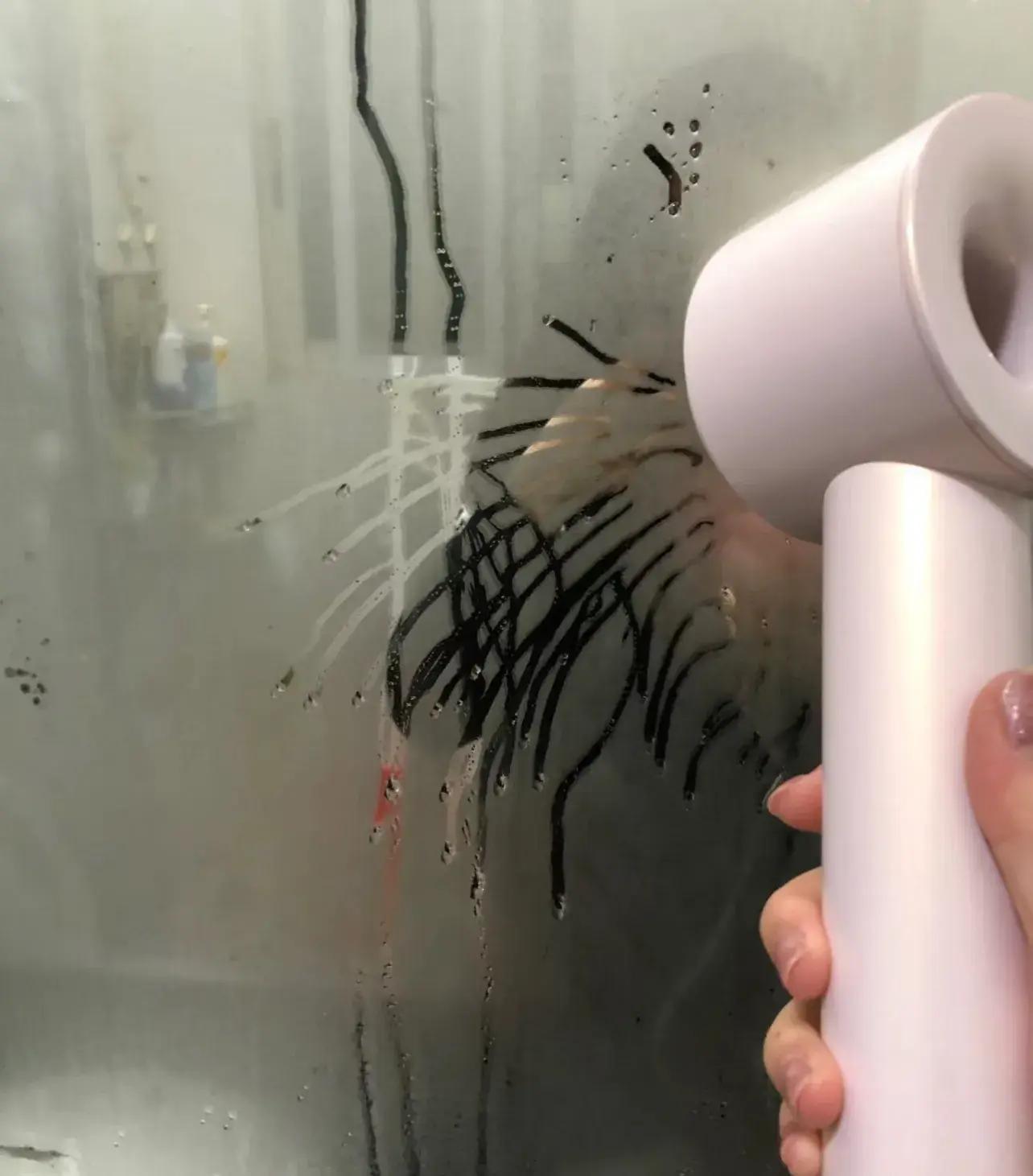 吹頭的時候,順手的事,把鏡子稍微吹一下,鏡子上的霧氣就消失了。