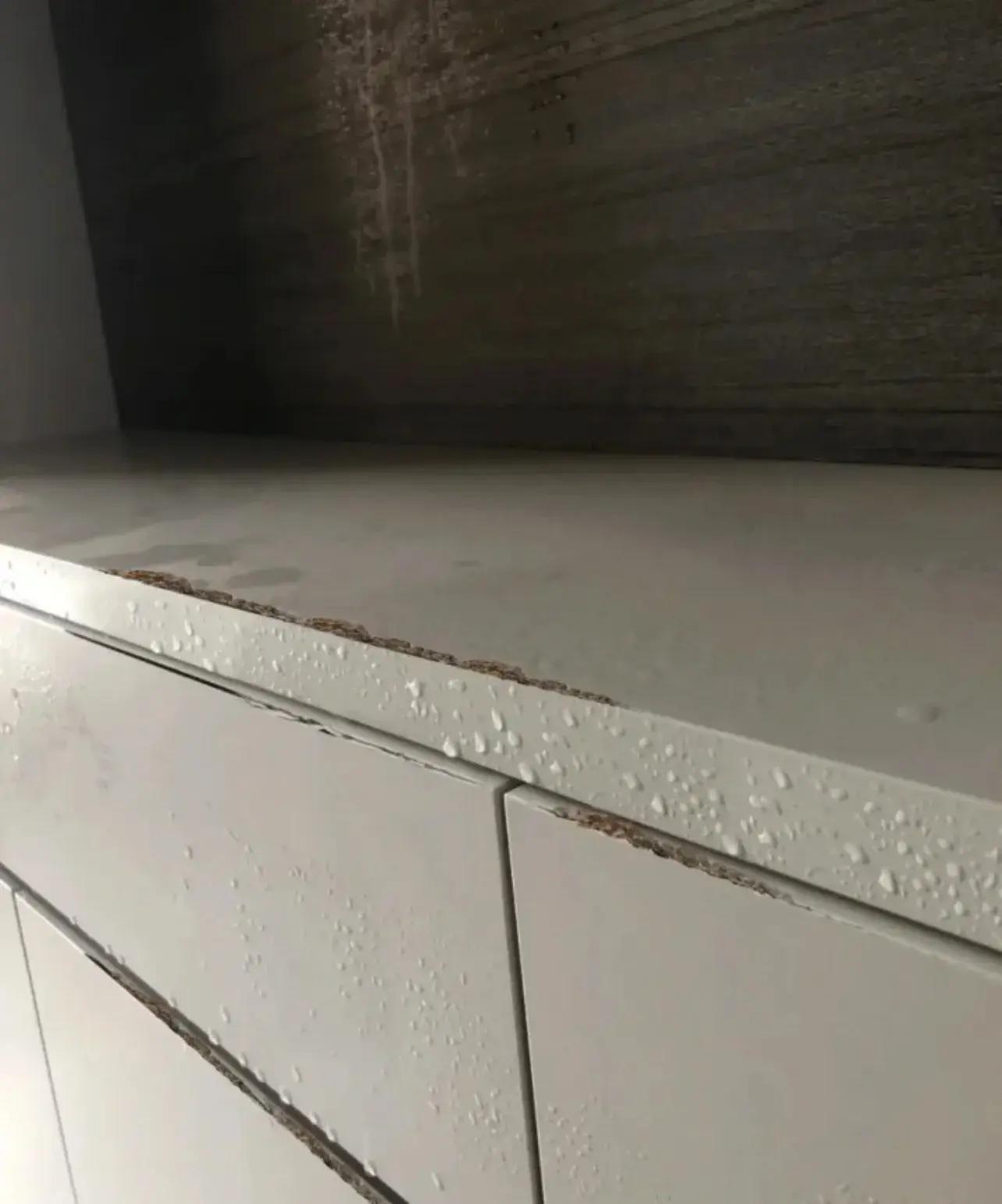 @網友愛誰誰誰,誰比我慘,聽信了網上說的悶蒸除醛,空調、加溼器齊上陣,蒸了三天過去一看,櫃子包邊全爆皮了。