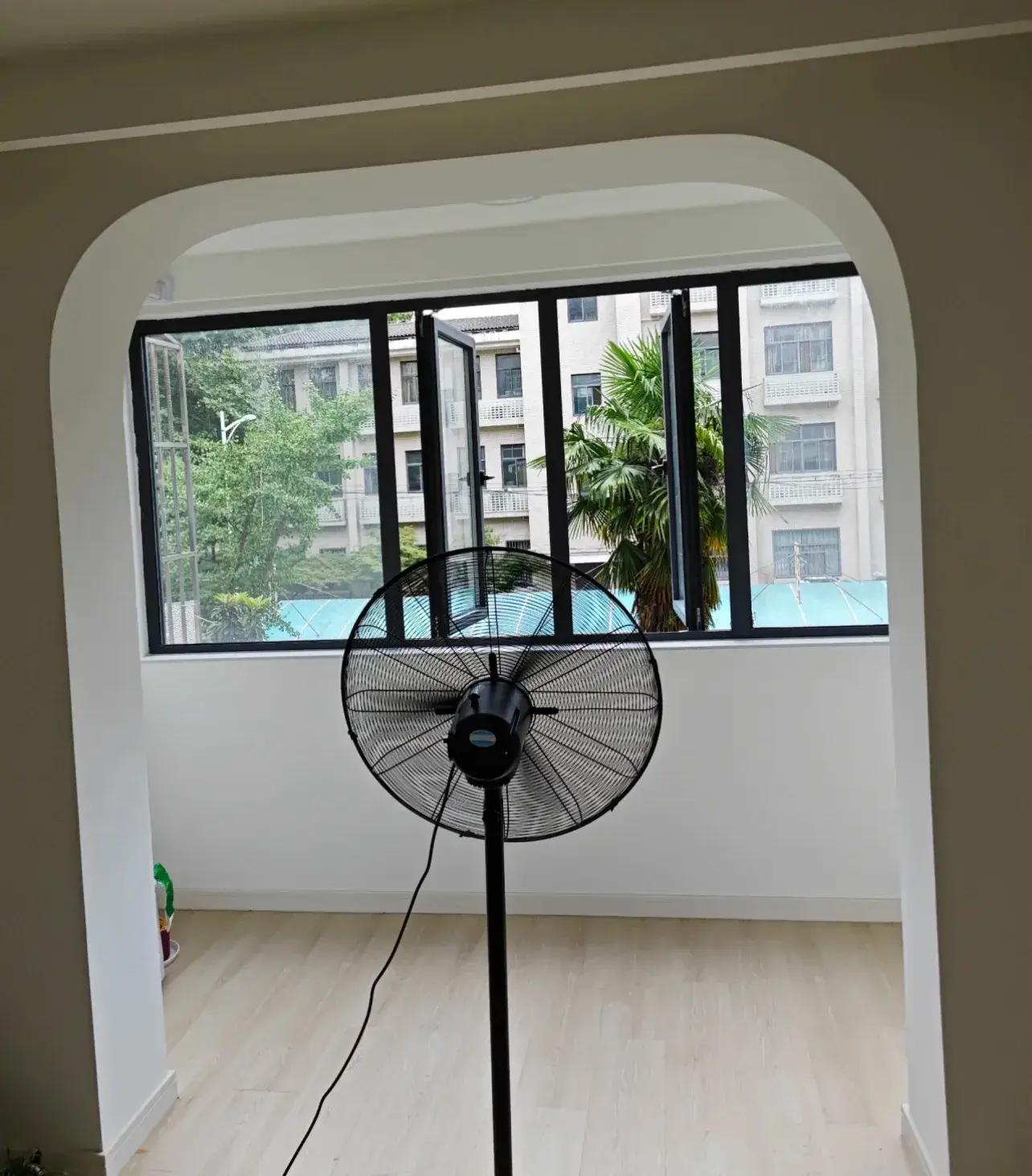 然後通風的時候,嫌效率慢的,也可以用電風扇輔助,不過注意是對着窗戶吹,強制形成對流增加通風量,用這個方法,一般百十平米的房子,幾分鐘就把室內空氣置換了。