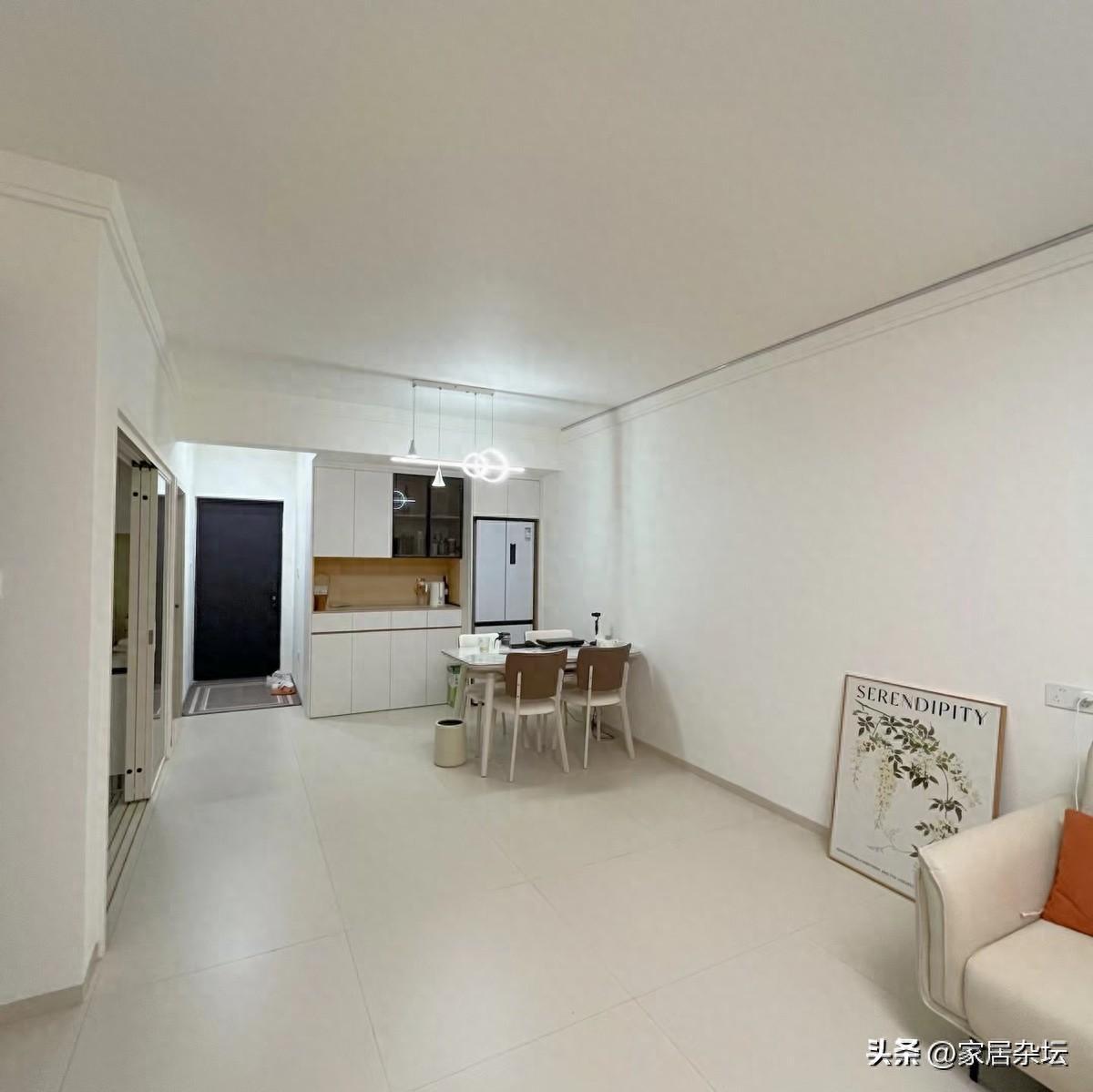 網友@自然美 我家裝修,就想裝出一個能讓我身心放鬆的家。選來選去,我就選擇了這種大白牆不弔頂的裝修。很多朋友開始看不習慣,入住以後,他們都投來了羨慕的眼光。每天回到家,就是一種享受。