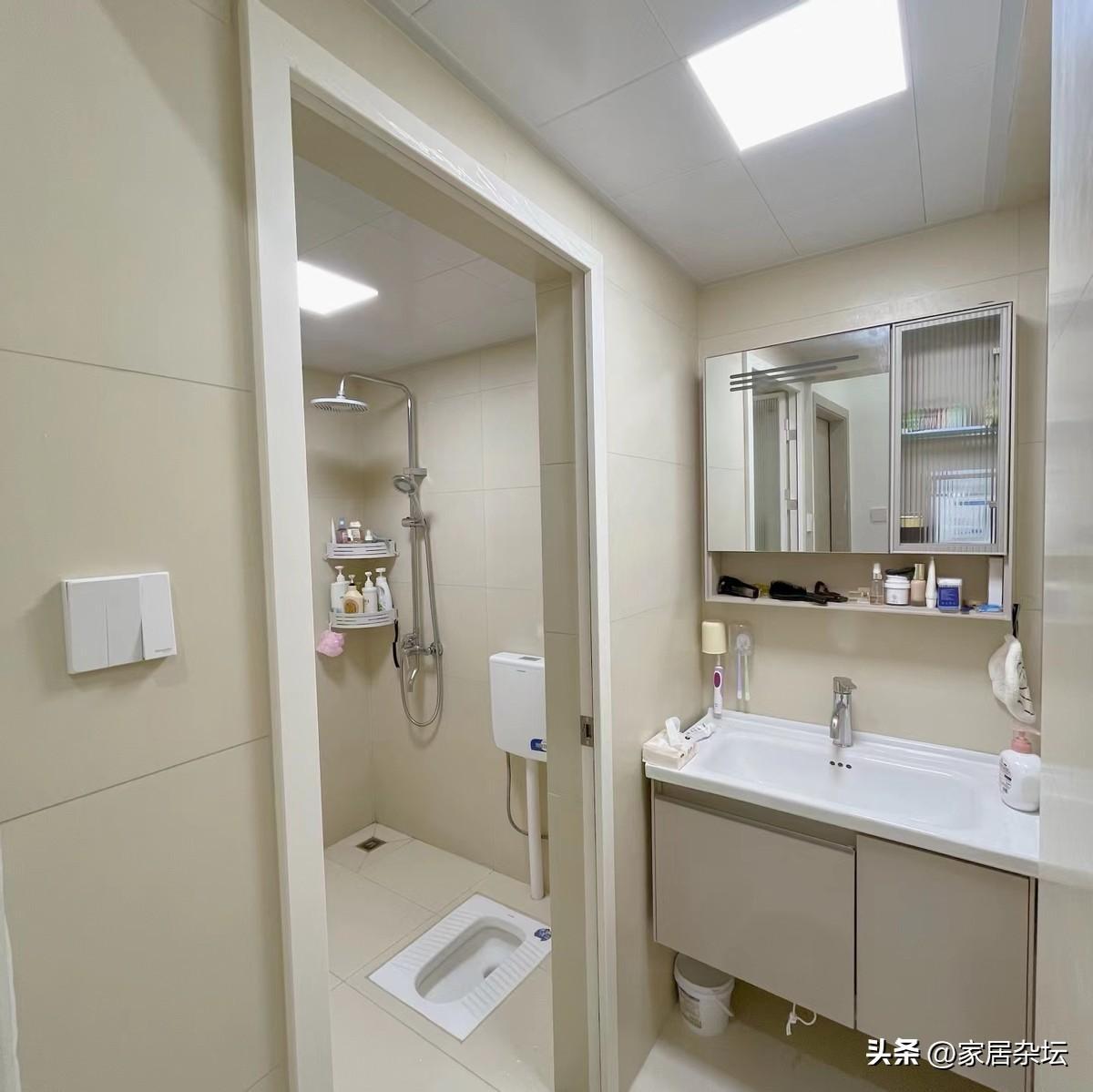 衛生間的瓷磚,是選擇的接近於白色的。因爲我家是暗衛,所以,整個鋪的白色瓷磚,會顯得更亮堂。