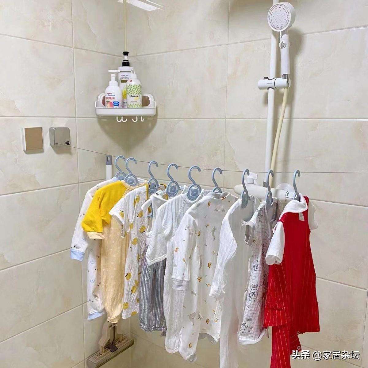 看看這戶人家的小衛生間,不到三平米,裝了隱形浴簾,內部安裝了隱形晾衣繩。