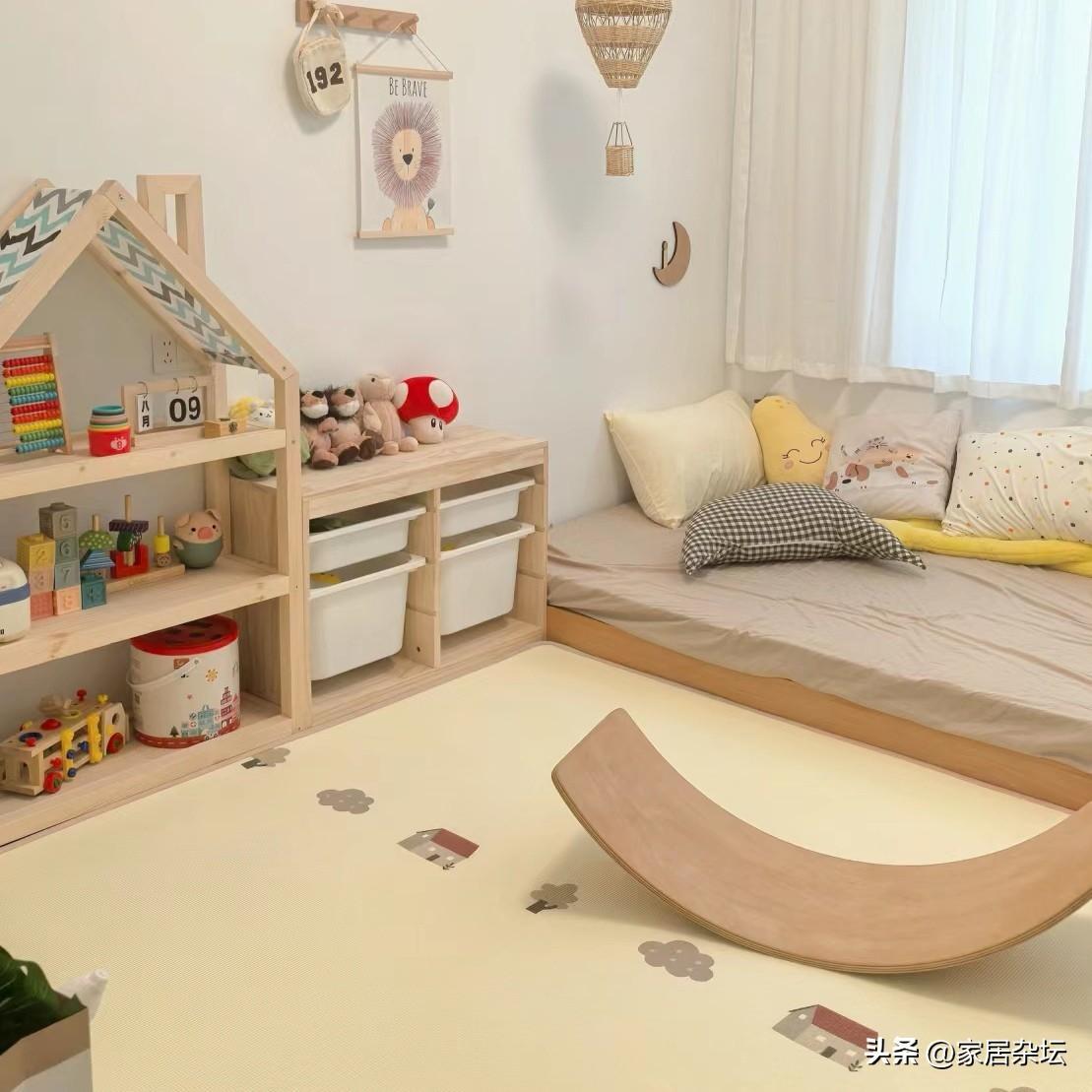 因爲小孩子睡覺,本就不老實。再加上小臥室面積很小,擺牀也受限。所以,我們就可以充分利用小臥室的地面。