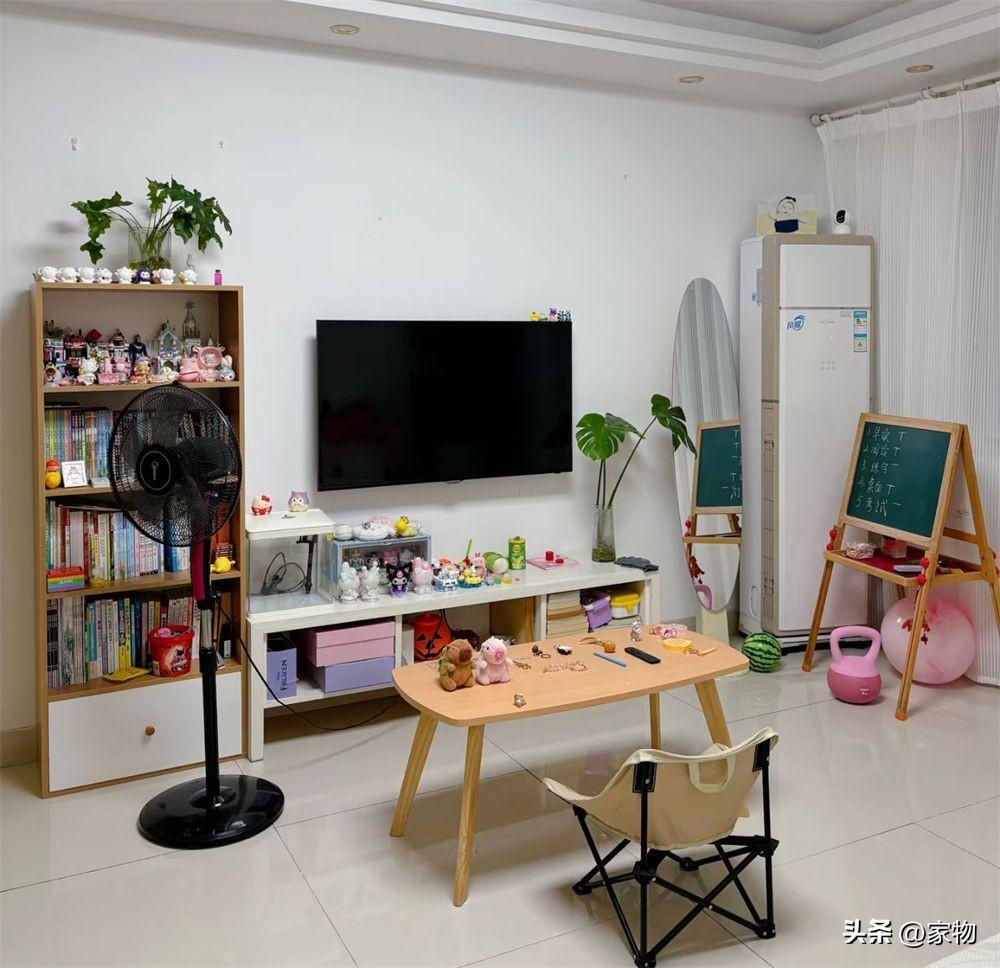 對面的電視牆並沒有做太多裝飾,這或許也是這一家三口在當時裝修時做得最正確的決定之一。
