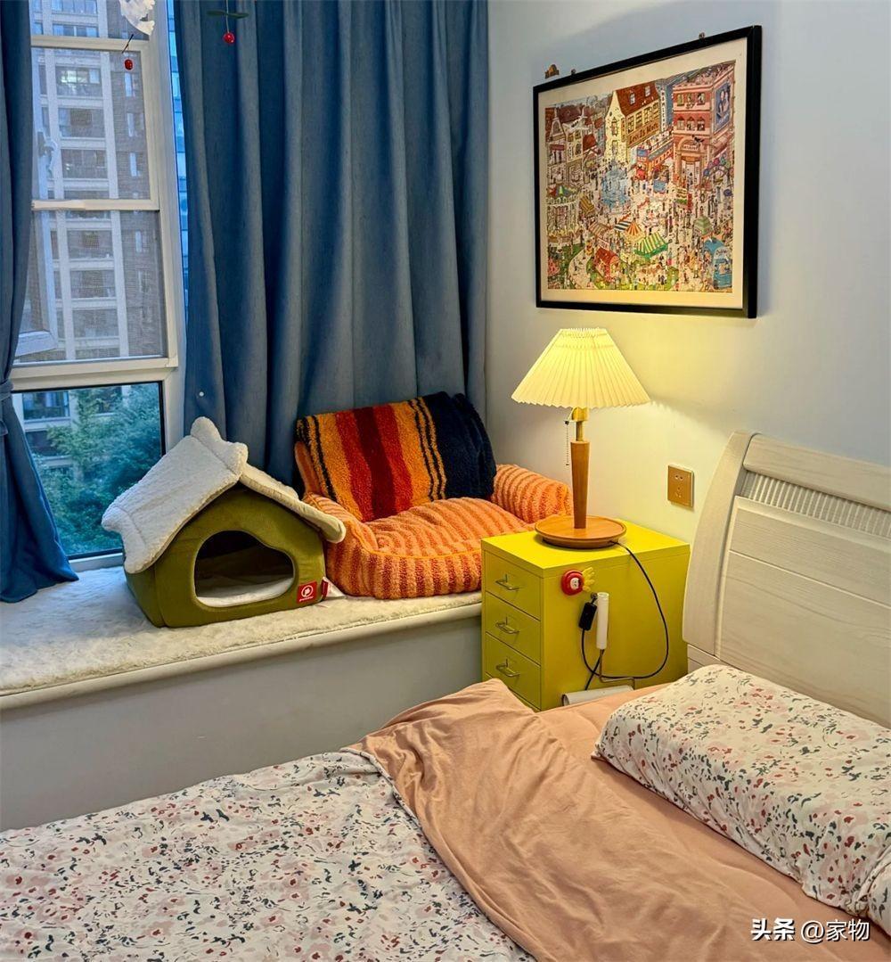 家裏有一主一次兩間臥室,主臥室內有張小飄窗,也做放了貓窩,冬天的時候貓咪睡在這裏會暖和一些。