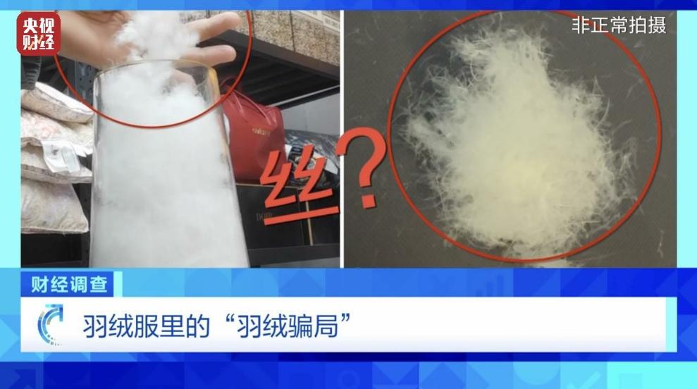 除此之外,更驚人的內幕也被央視記者挖出來,有些羽絨製品的企業,爲了控制生產成本,竟然採用將棉、絲和絨相互混合的方式,來增加羽絨製品填充物的蓬鬆度,從而在外觀上迷惑消費者。