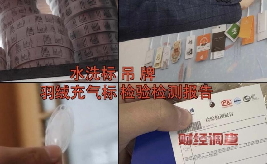 這些造假企業的商家告訴央視的記者,所有的“檢測報告、吊牌、水洗標、羽絨充氣標等都是在輔料店買的“通版”,誰都可以用”。