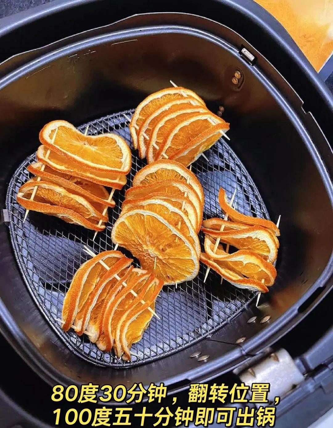 家裏喫不掉的臍橙,可以切片穿牙籤,放進空氣炸鍋80度30分鐘+100度50分鐘(中途暫停翻轉位置均勻受熱),你將收穫一袋超級好喫的水果乾,用來泡水果茶,美滋滋~