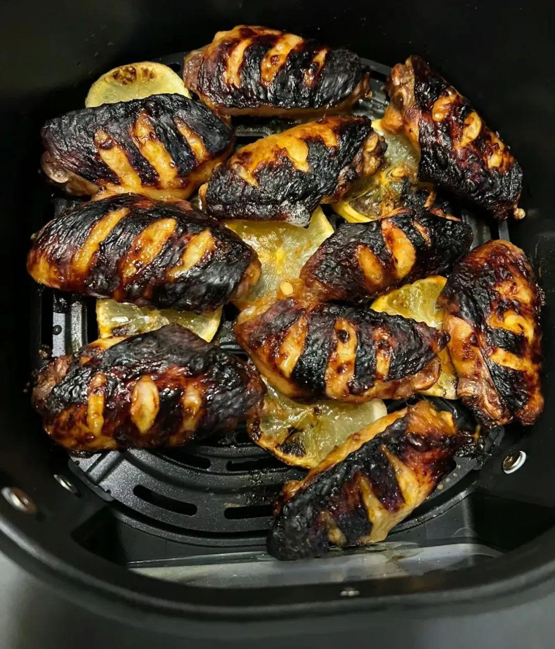 難道是食材不適合嗎?過了兩天重振旗鼓,買了一袋雞翅回來繼續挑戰,並且端正學習態度,認真觀看了某熱度很高的教程,實操調200度,15分鐘後.