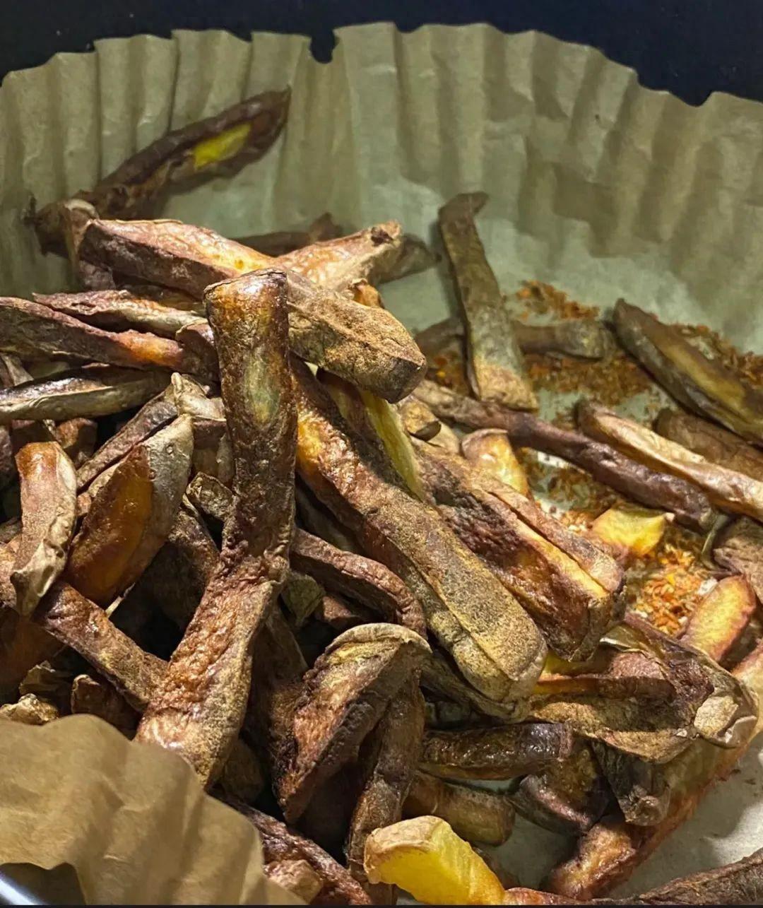 事件的起因是我刷到用空氣炸鍋的美食貼,在家就能實現薯條自由,實在太誘惑忍了,於是興沖沖下單,搜了一堆烹飪教程教程,操起一顆土豆就開整,然後精心烹飪出一盤又乾又硬的脫水薯條幹...