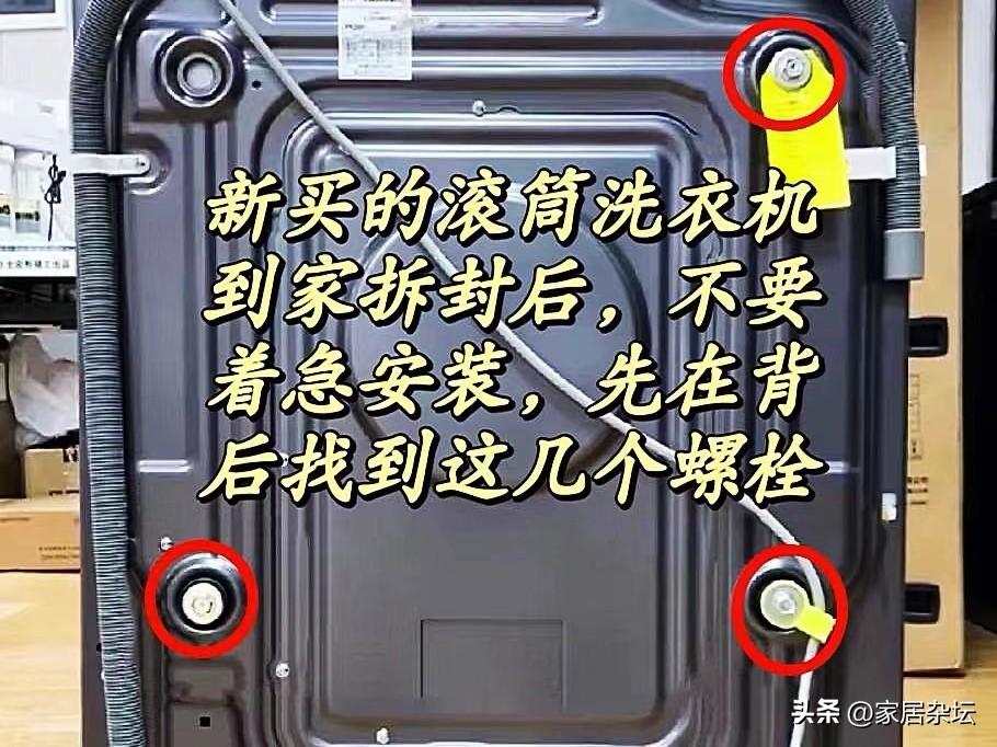 最後,還要檢查一下洗衣機下面的運輸螺栓是不是都拆掉了。