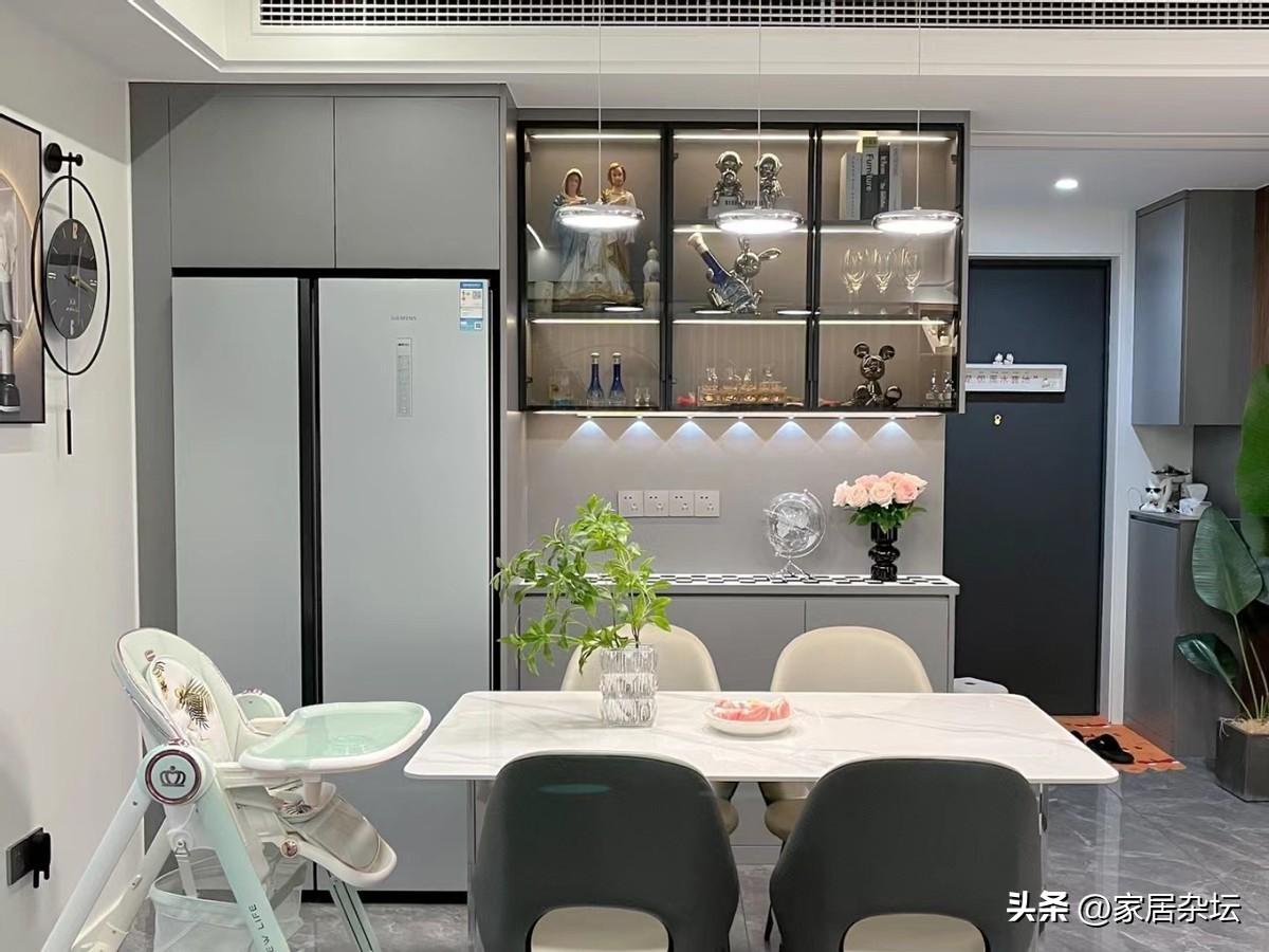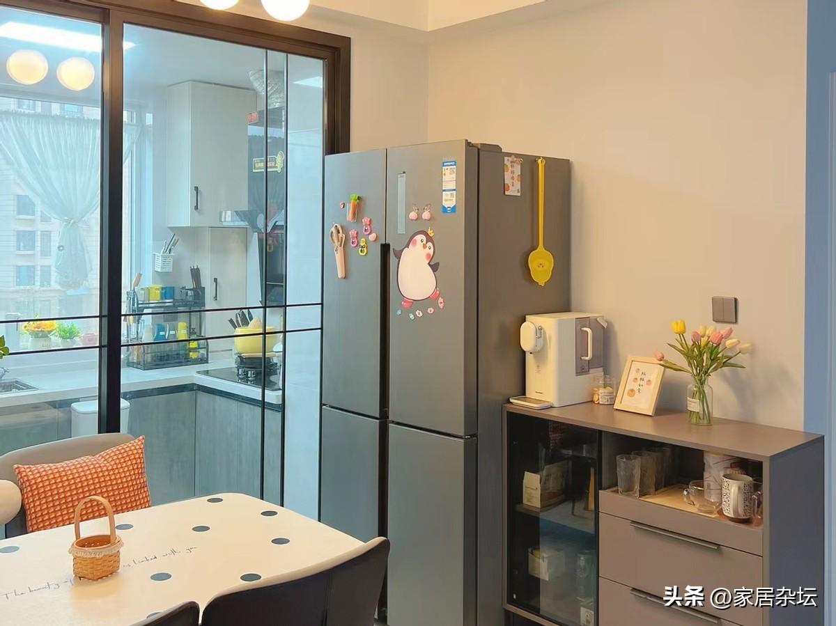 既然冰箱放不了廚房,那麼我們就近放在餐廳。這是目前絕大多數家庭會選擇的一種方案。