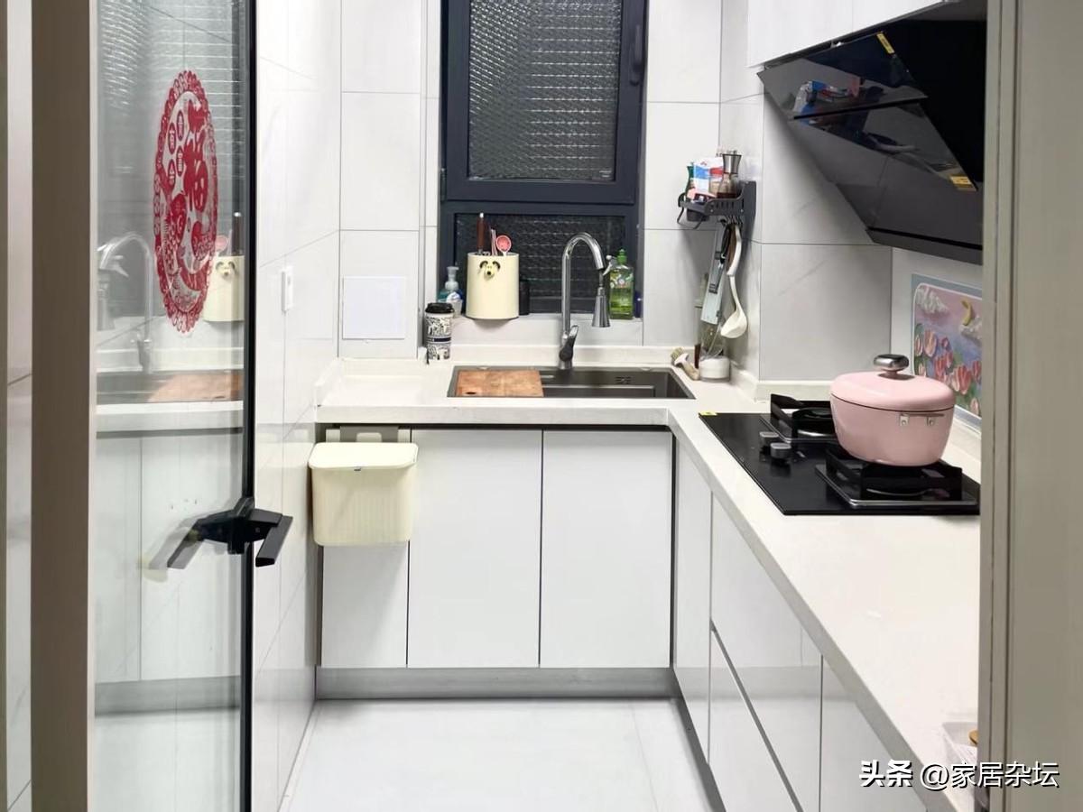 發現廚房很小以後,你就不好佈局了,冰箱可能就擺不下。這時我們唯一的方案,就是放棄把冰箱放廚房。