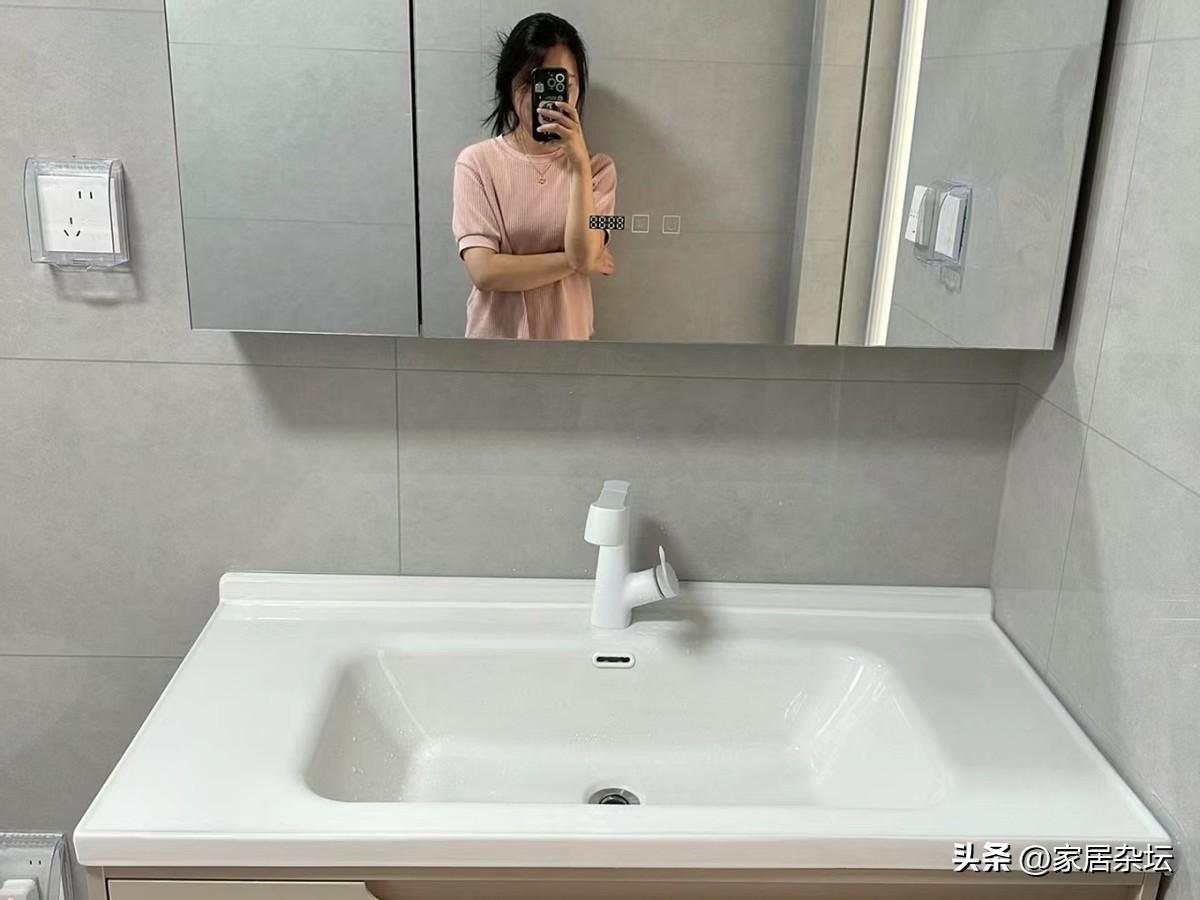 選擇的陶瓷一體盆,邊緣部位儘量要高出來一些,背部打膠。這種方式,可以讓這個位置的家務全部消失。