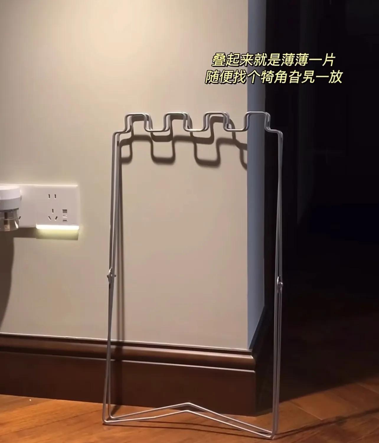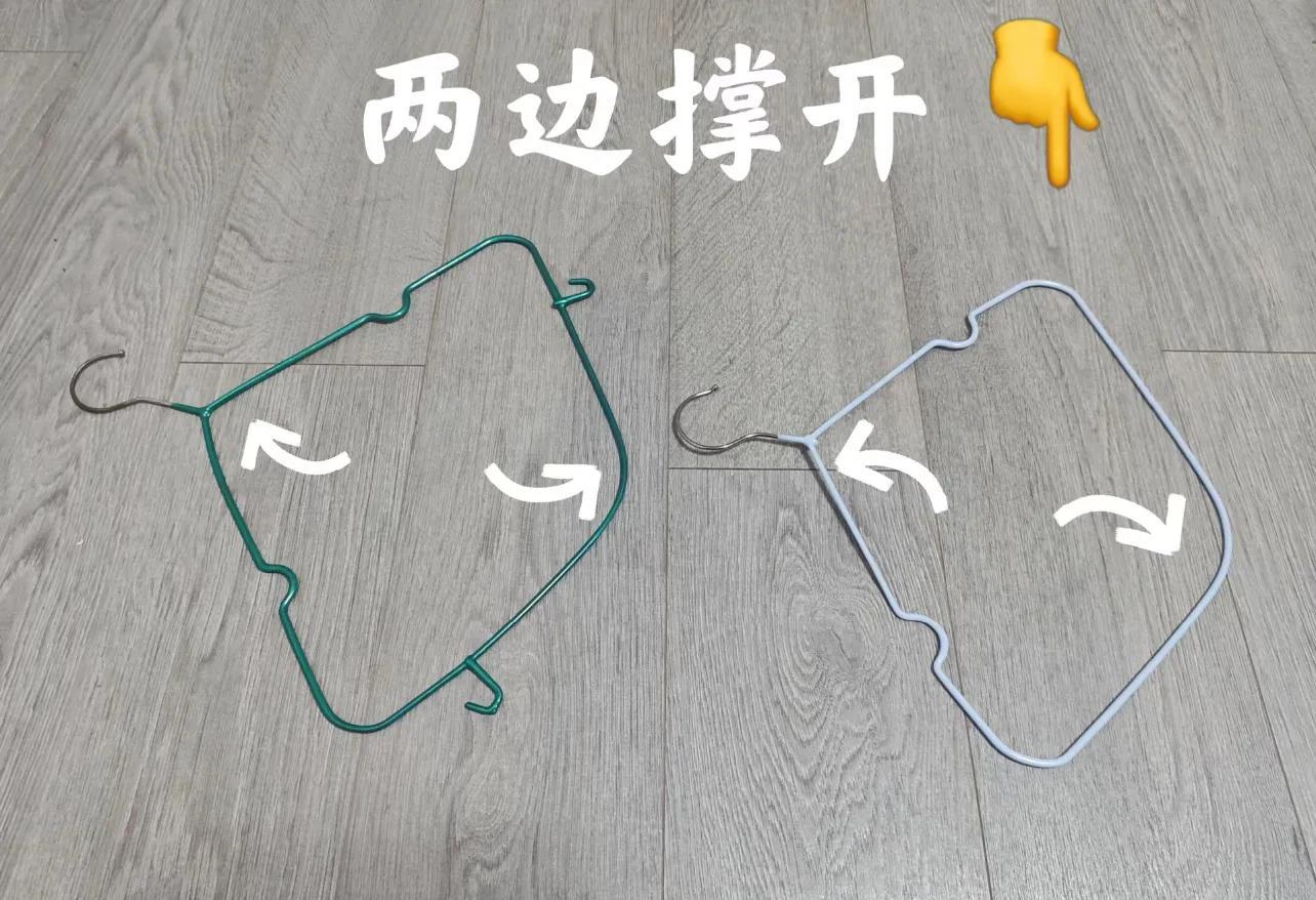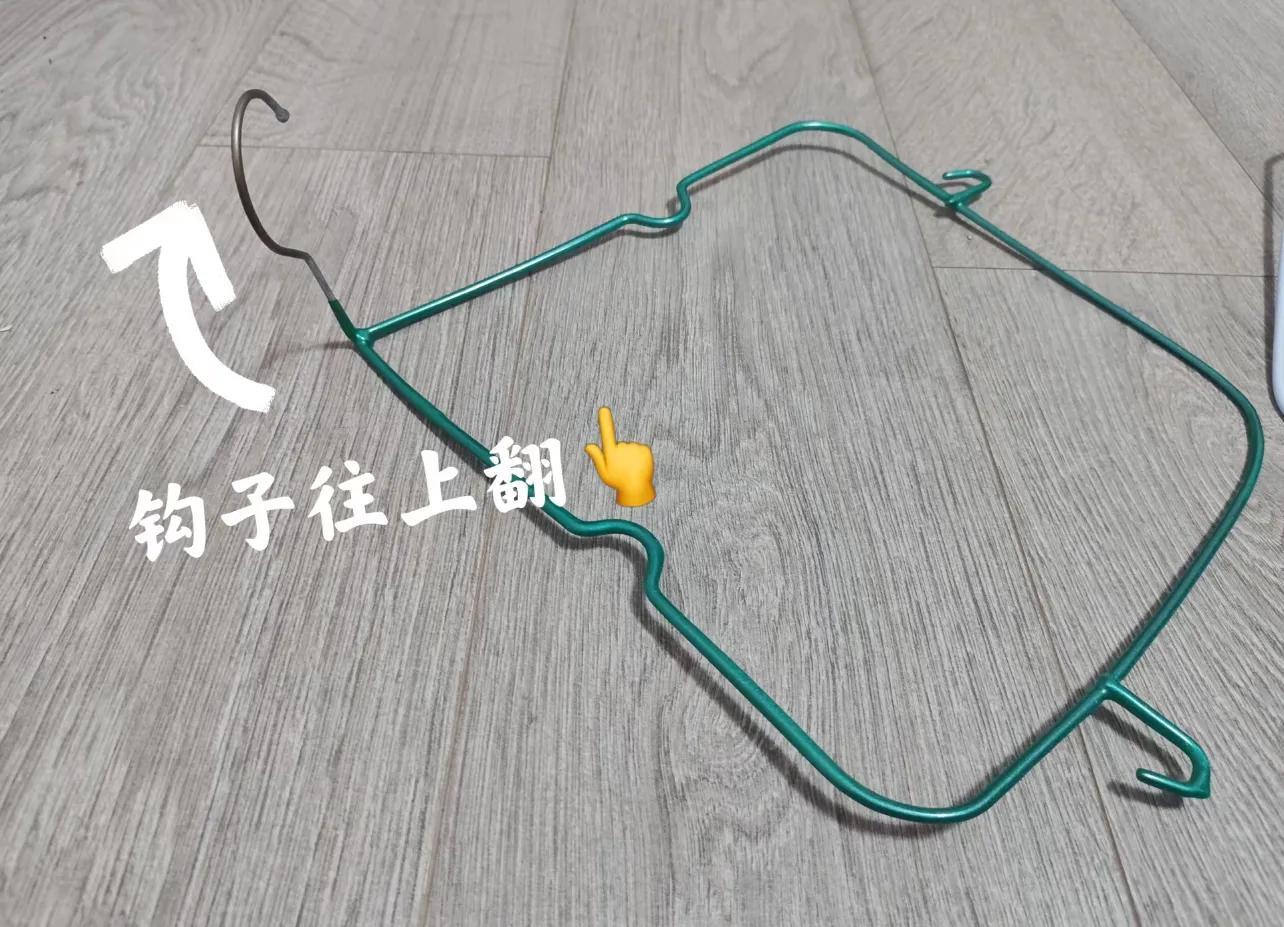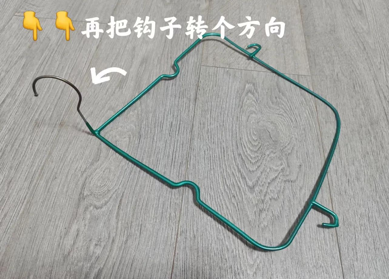 如果這都嫌麻煩,步驟還可以簡化,直接拿一個衣架過來,搓搓揉揉,也能成垃圾架模樣。
