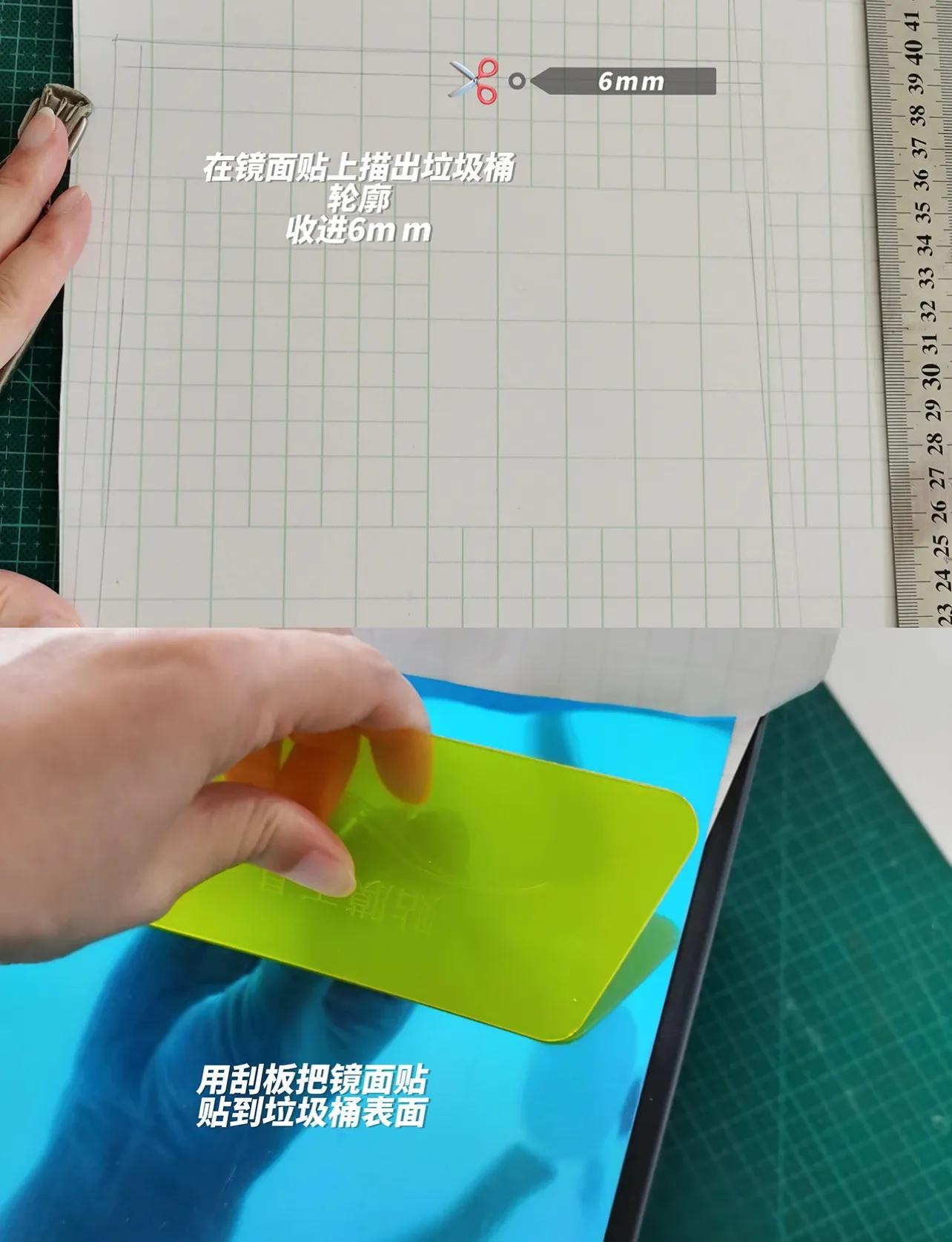 先是利用櫥櫃改色剩下的貼紙,把垃圾桶貼上。