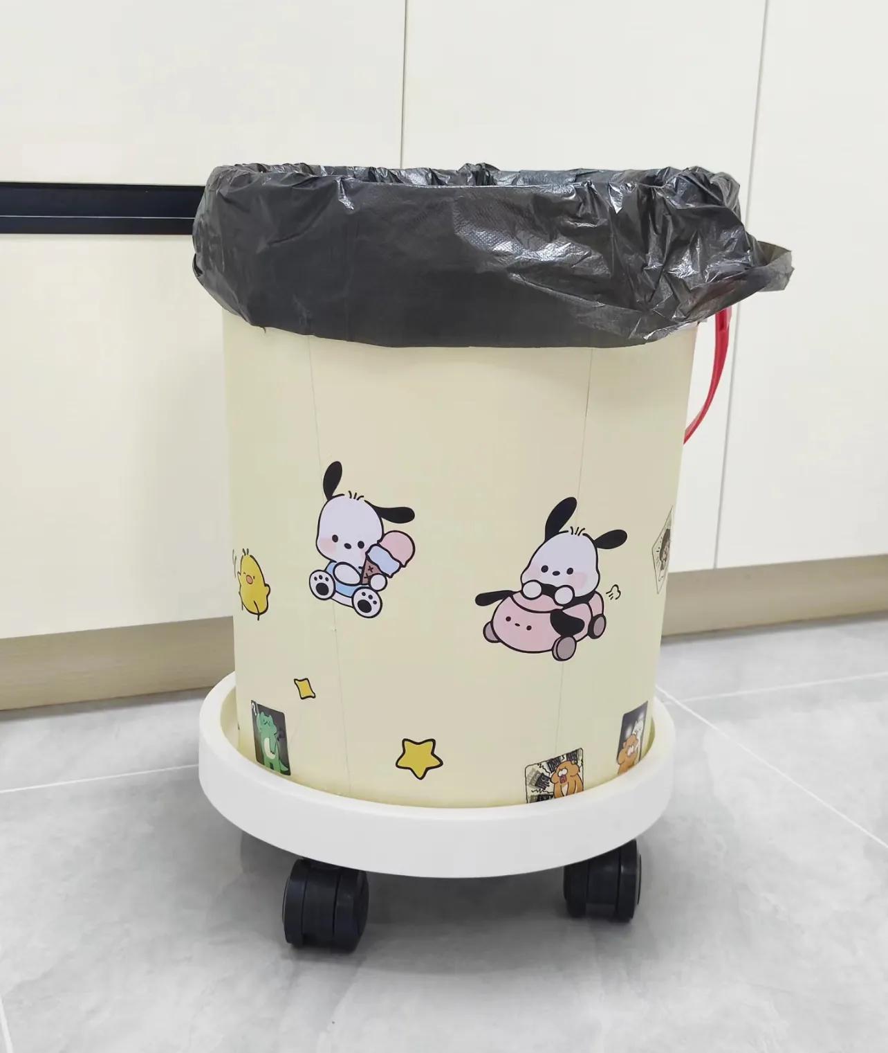一個可愛又美貌,還方便移動的廚房垃圾桶就做成了。
