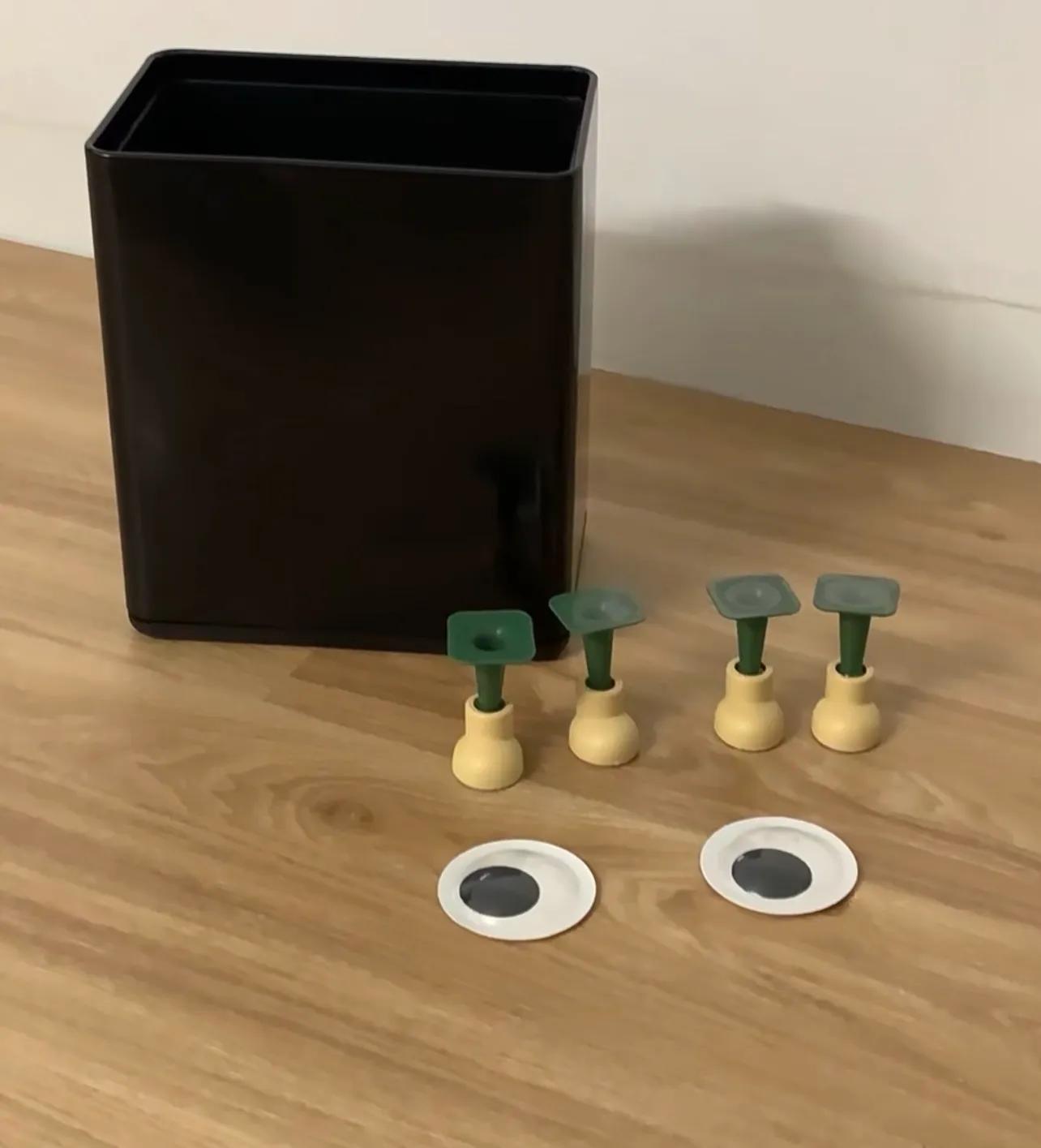 四個門檔小jo+一對眼睛,一個可愛的垃圾桶改造完成了。
