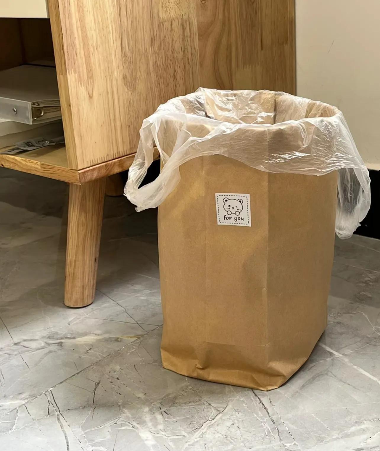 原本的垃圾桶,太醜,剛好奶茶袋可以套進原來的垃圾桶,就直接套了,相當於給以前的垃圾桶直接換皮膚了。