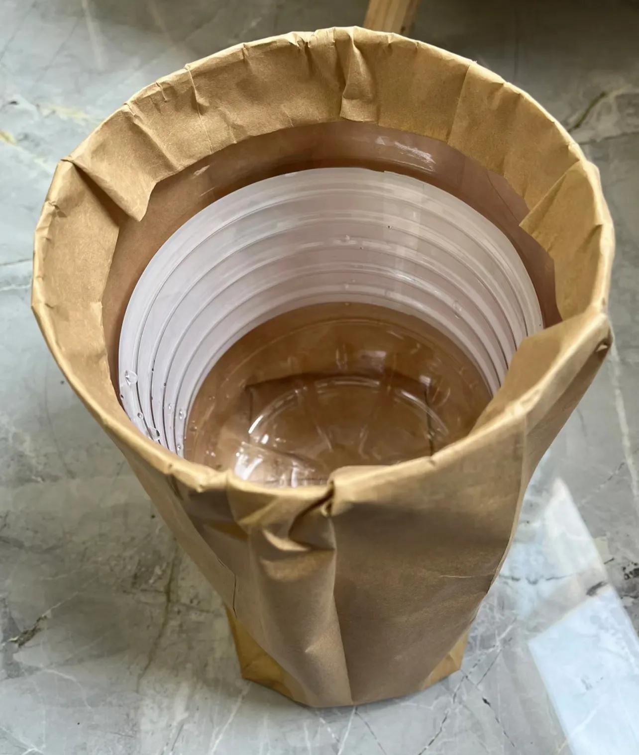 當然,外皮,不一定非得用牛皮紙袋,也可以用不花錢的奶茶袋來裝飾礦泉水瓶垃圾桶的外表。