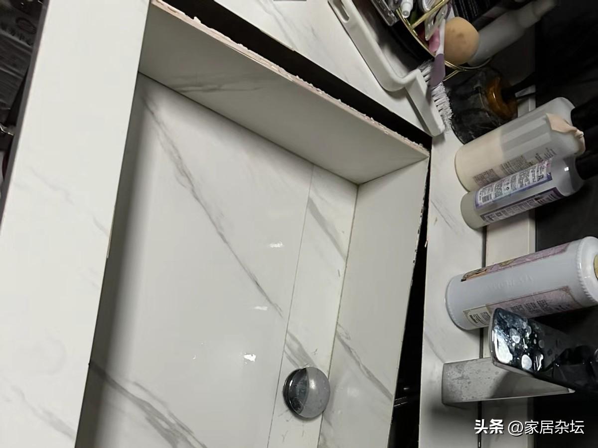 衛生死角的問題,也很頭疼。因爲是使用巖板粘貼,所以,在粘貼的部位,特別容易形成衛生死角,不好清潔。