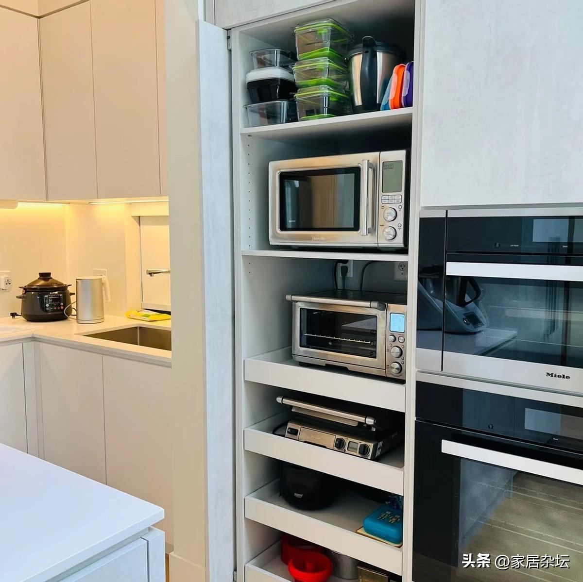 這些電器,如果我們沒有考慮收納,往往只能擺在廚房檯面上。時間長了,檯面滿滿當當,不僅容易落灰,而且用着很不方便。