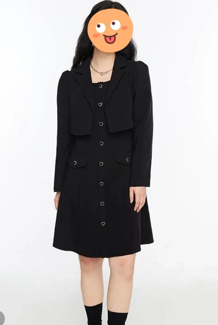 首先是,哪怕有外套,但不能敞開釦子穿,因爲裏面是吊帶,但凡打開,立馬會體驗到什麼叫秋風刺骨!而扣上釦子,保暖性好了,但是中規中矩的樣式又十分難看;