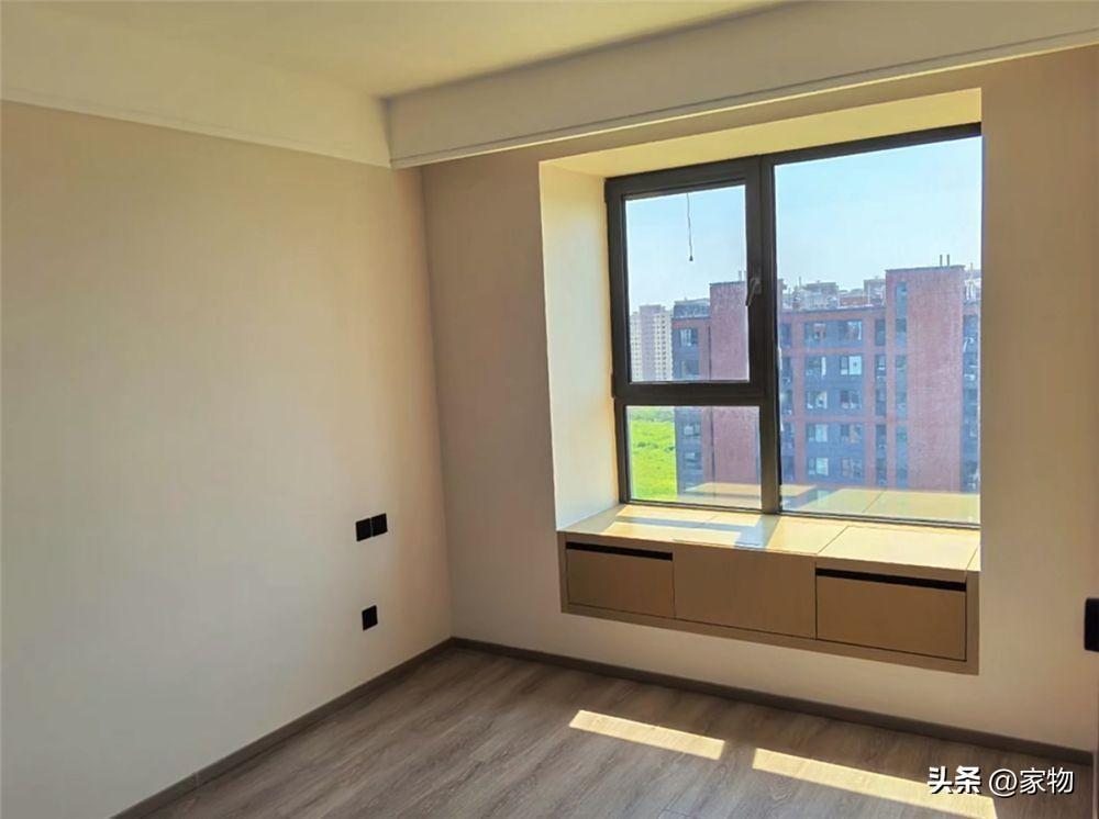 家裏有一大一小兩間臥室,而目前只簡單裝修了主臥室,飄窗用櫃格進行抬高,變成了一張面朝窗戶的書桌,將原本的冗餘區域就此利用起來,真的是兼顧了美觀和實用性。
