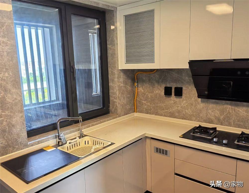 而家裏的廚房,小小一個區域做了L形的櫃子,搭配竈臺上面的窄吊櫃,將各種碗碟餐具都可以收納到櫃子裏,讓廚房檯面顯得更加整潔乾淨,平日裏擦拭清潔也方便很多。