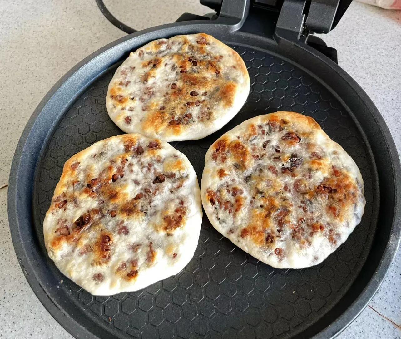 待烙餅程序結束後,酥脆掉渣的梅乾菜燒餅就做好了。
