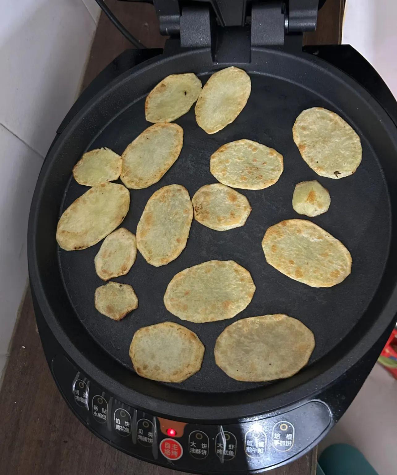 知道電餅鐺可以烤菜,但沒想到的是,它烤土豆片技藝高超到能跟外面賣的媲美。
