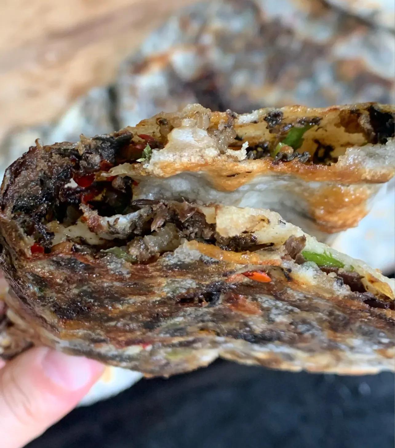 另外,關於餅皮,我也嘗試過發麪版、不發麪版和一半燙麪版,口感有差異,但無疑都是好喫的,所以哪怕廚房小白,都可以在家盡情嘗試。