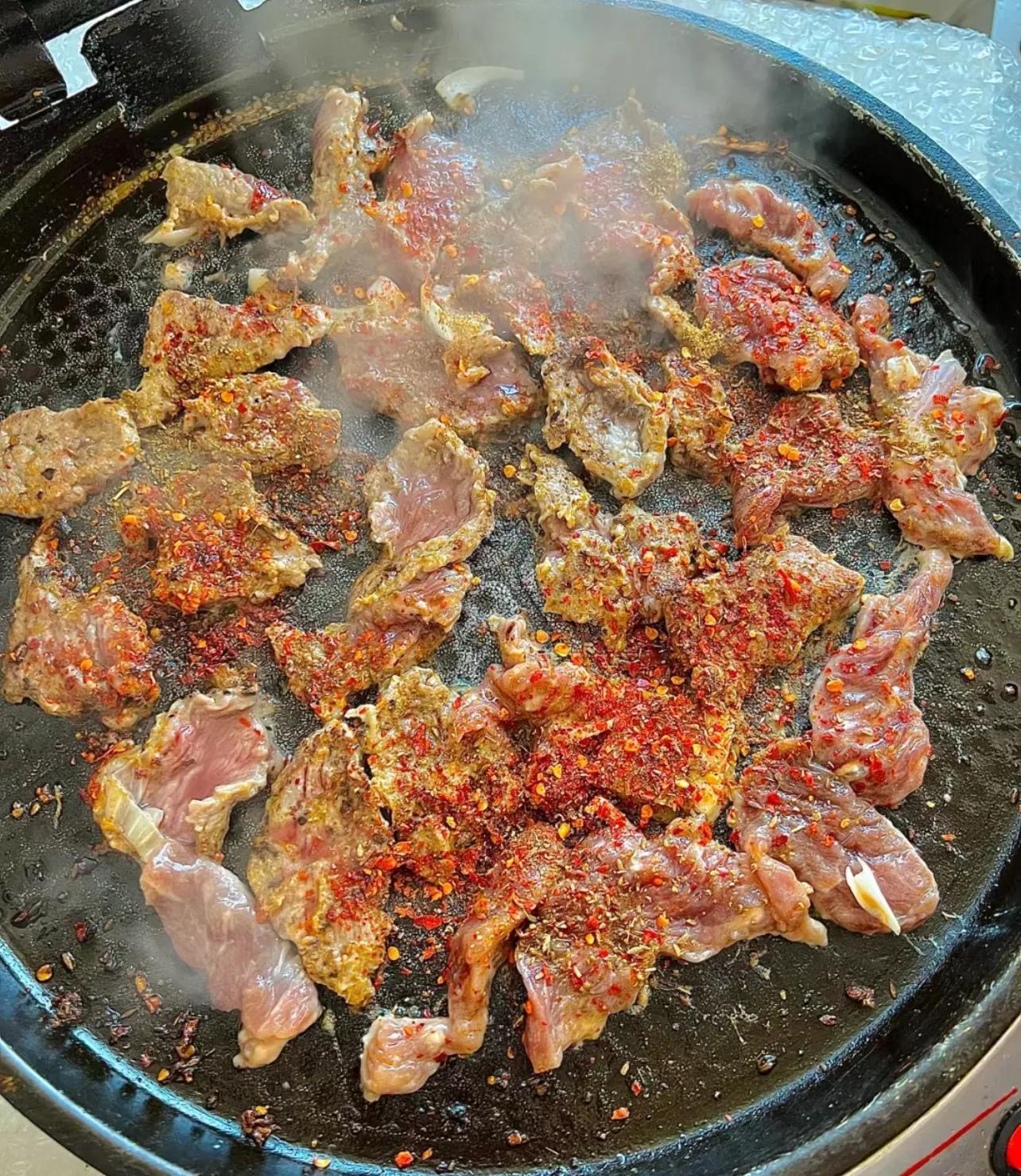 然而超過預期的是,它烤出來肉是那種韓式鐵板烤的感覺,香到不行。