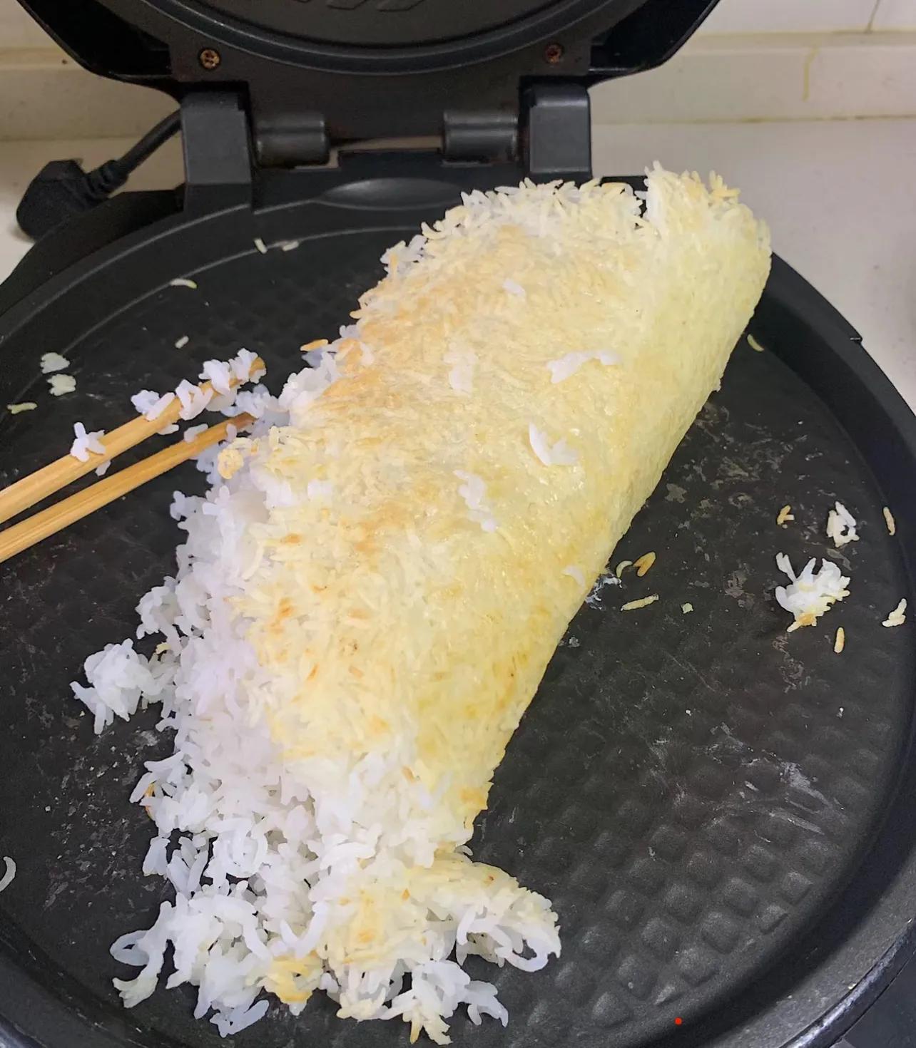 說真的,看到電餅鐺做鍋巴飯這個方法,我是又驚喜又害怕。