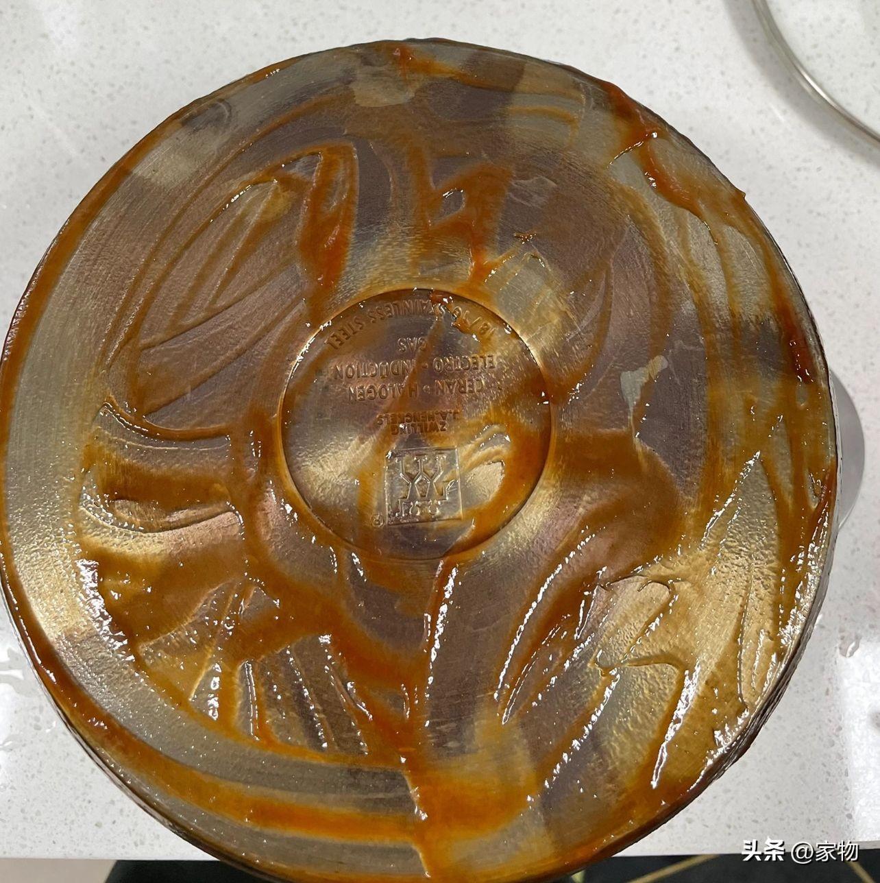 那就是用家裏的番茄醬,在鍋髒污的表面抹上厚厚一層,用保鮮膜包裹起來放一晚上,再用百潔布刷洗一下,你就會發現乾淨如新!