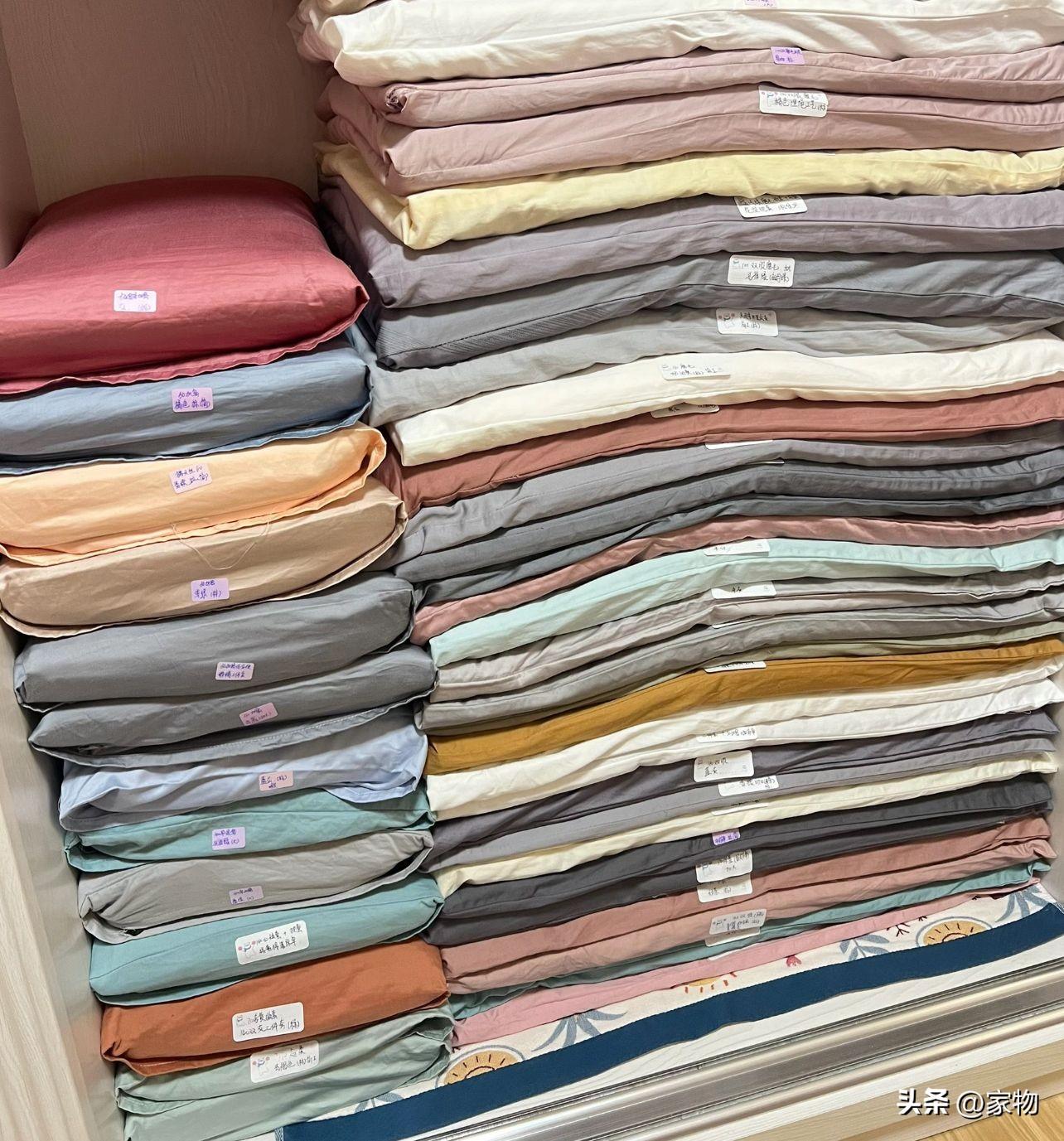 家裏洗完的四件套東一件西一件,很難收納,但我媽卻有妙招,她把清洗過後的四件套,全都裝到一個枕套裏收納,要用的時候拿出來便是成套的,有條有理。