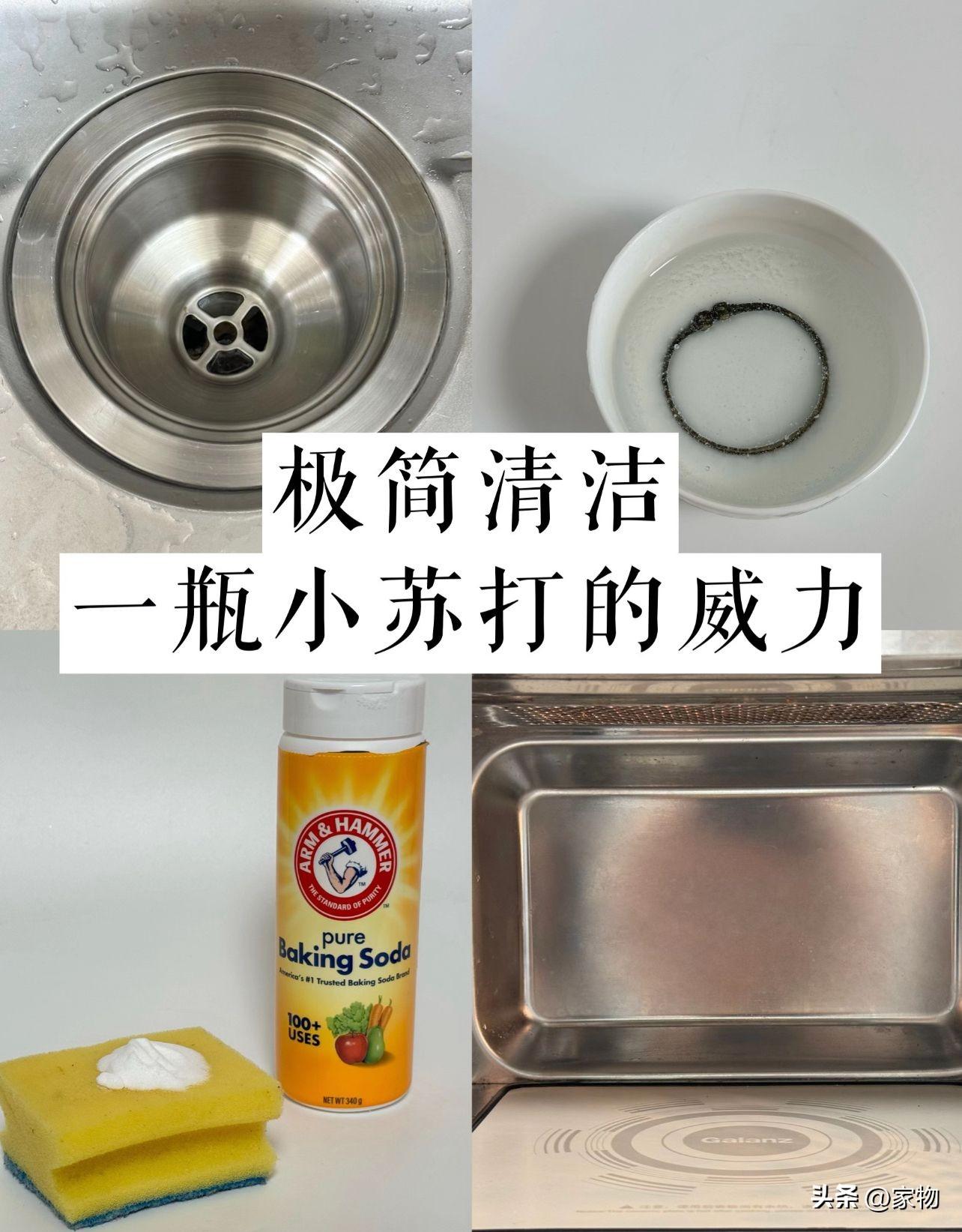 最後就是小蘇打啦,它也是我媽常備的家務清潔神器,基本上哪兒髒哪兒有頑垢,都可以用它來進行清潔,無論是廚房的油垢,衛生間的水垢,還是家裏其他地方的污漬,甚至是下水管堵了,都能用它搞定,真是萬用了!