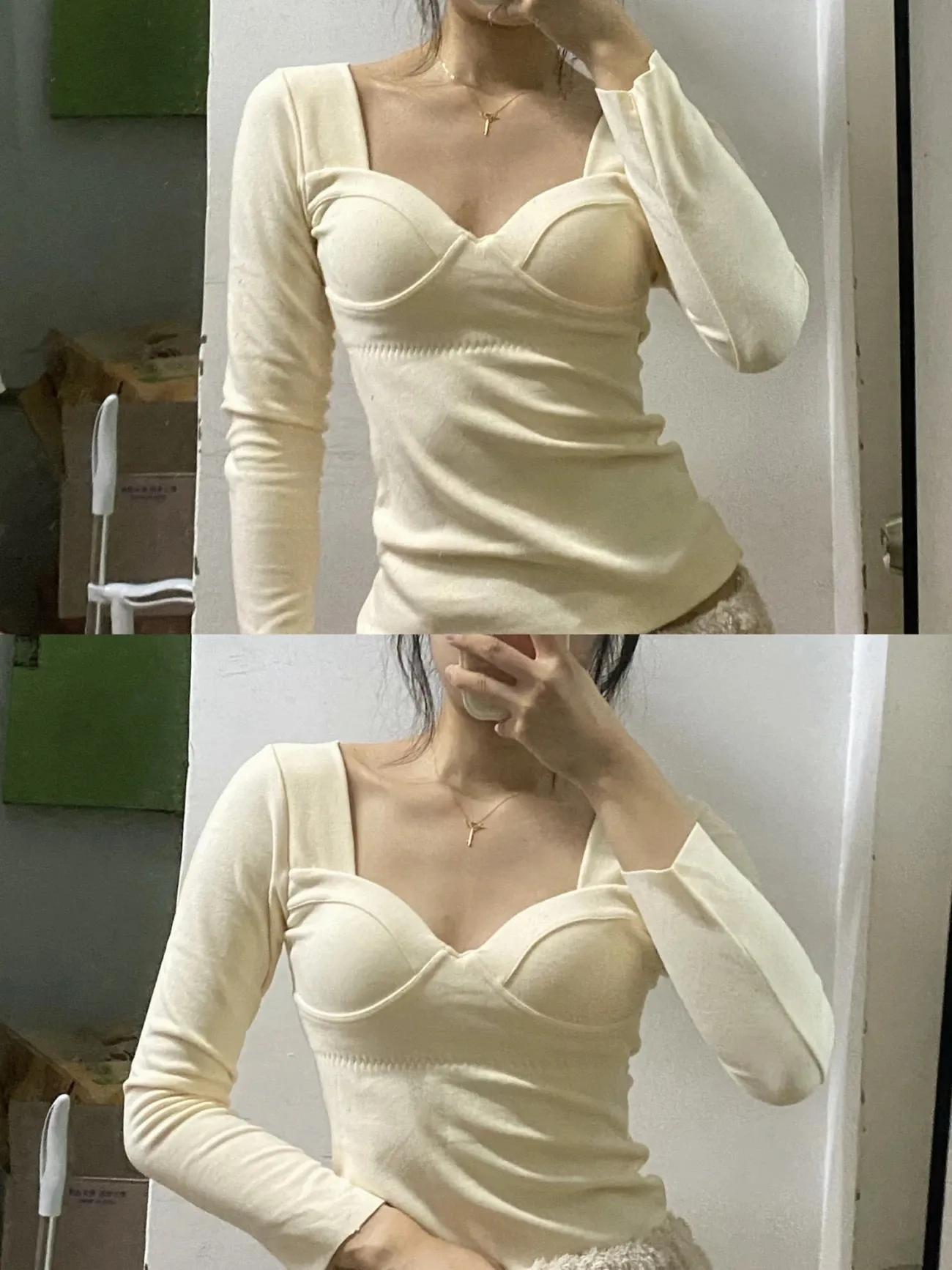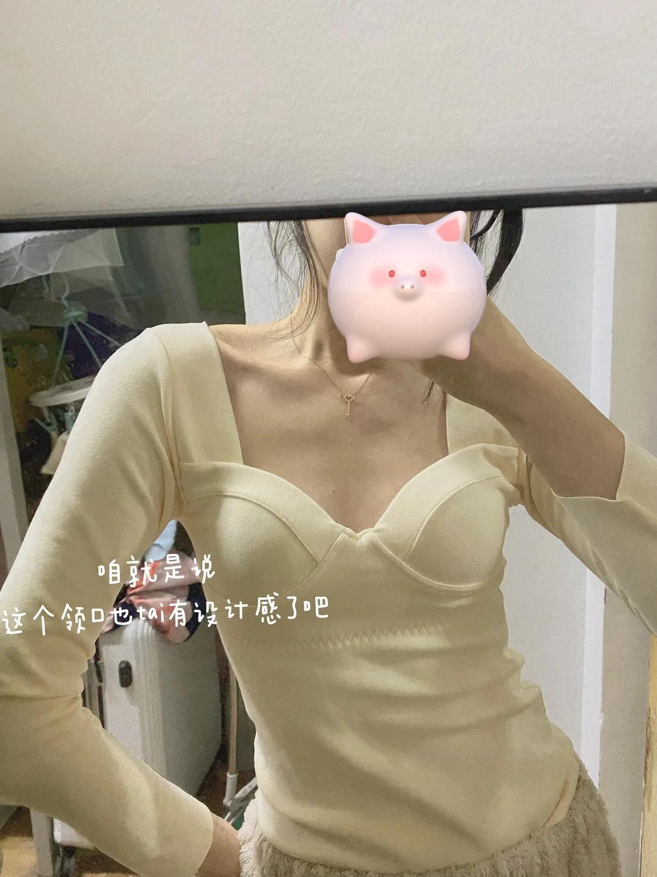 當然,也並不是完全無形,這種免bra秋衣,它的優勢在於不僅自帶胸墊,能避免凸點尷尬,而且胸下圍還有鬆緊託帶,穿出來的形還非常好,就是那種舒服與好看兼顧到的感覺。
