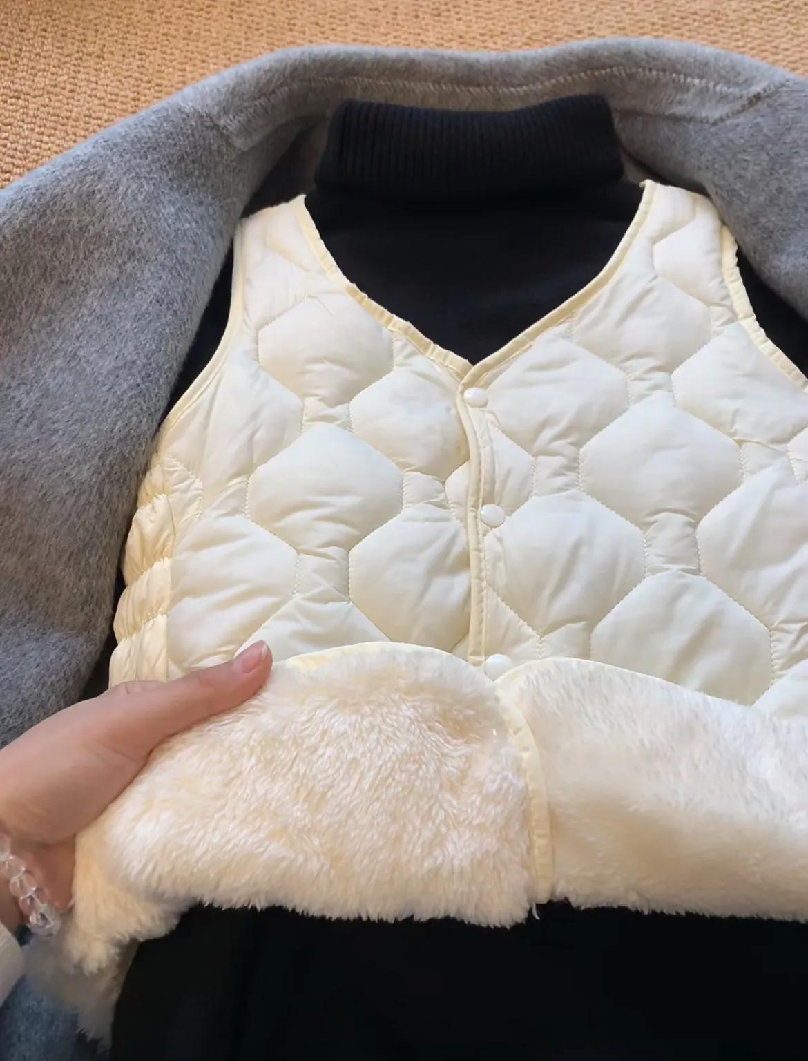 而這個馬甲它除了本身夾棉,內裏還加了一層羊羔絨,所以溫暖是翻倍的。