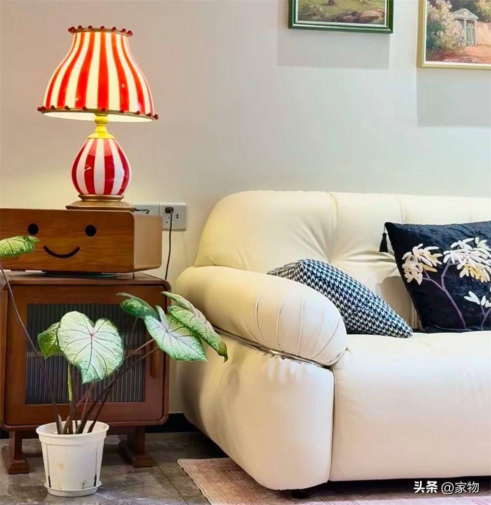 沙發旁邊的電視櫃很有意思,是個小機器人造型的,上面一盞“馬戲團”檯燈照射出的暖色光,讓客廳也多了幾分溫柔的感覺。