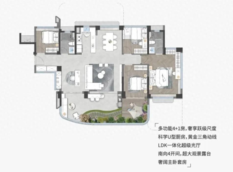 第四代住宅+新規,陽臺空間會變多,解決晾曬問題,還增加了一個大露臺,一般都是20平起步,空間感十足。