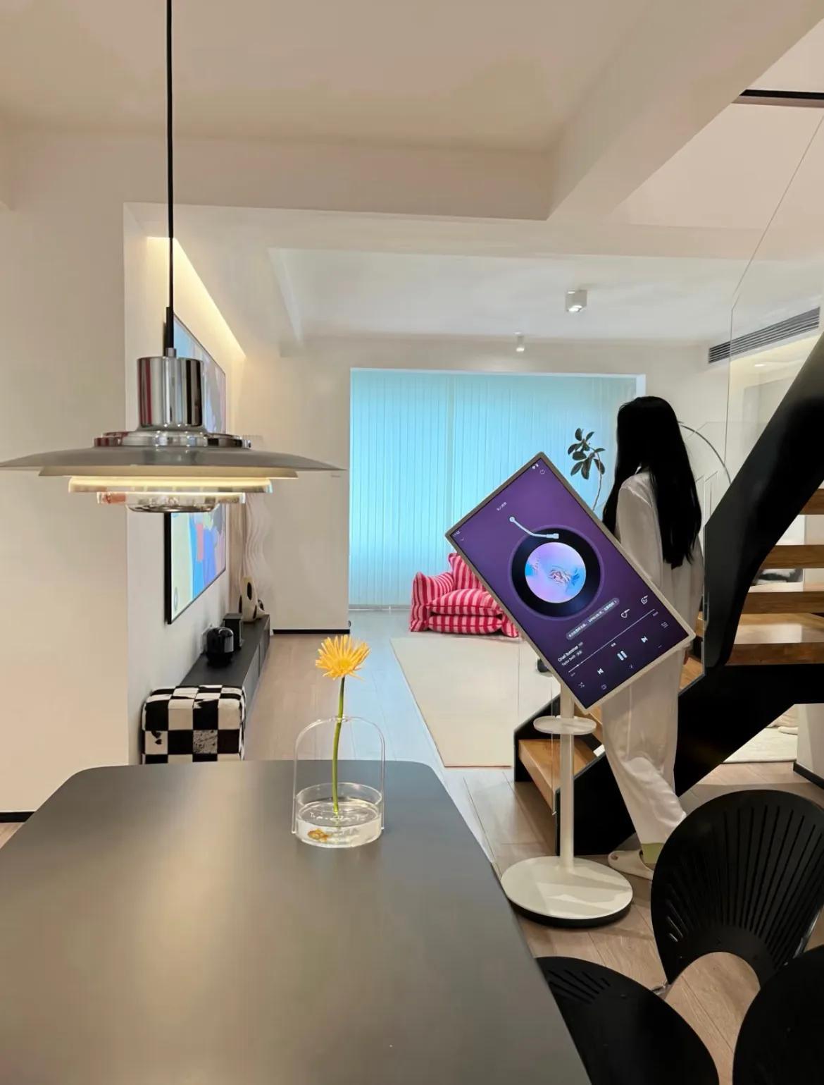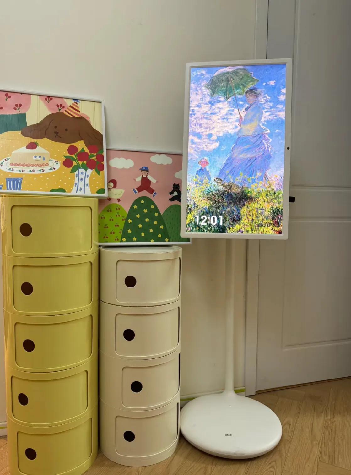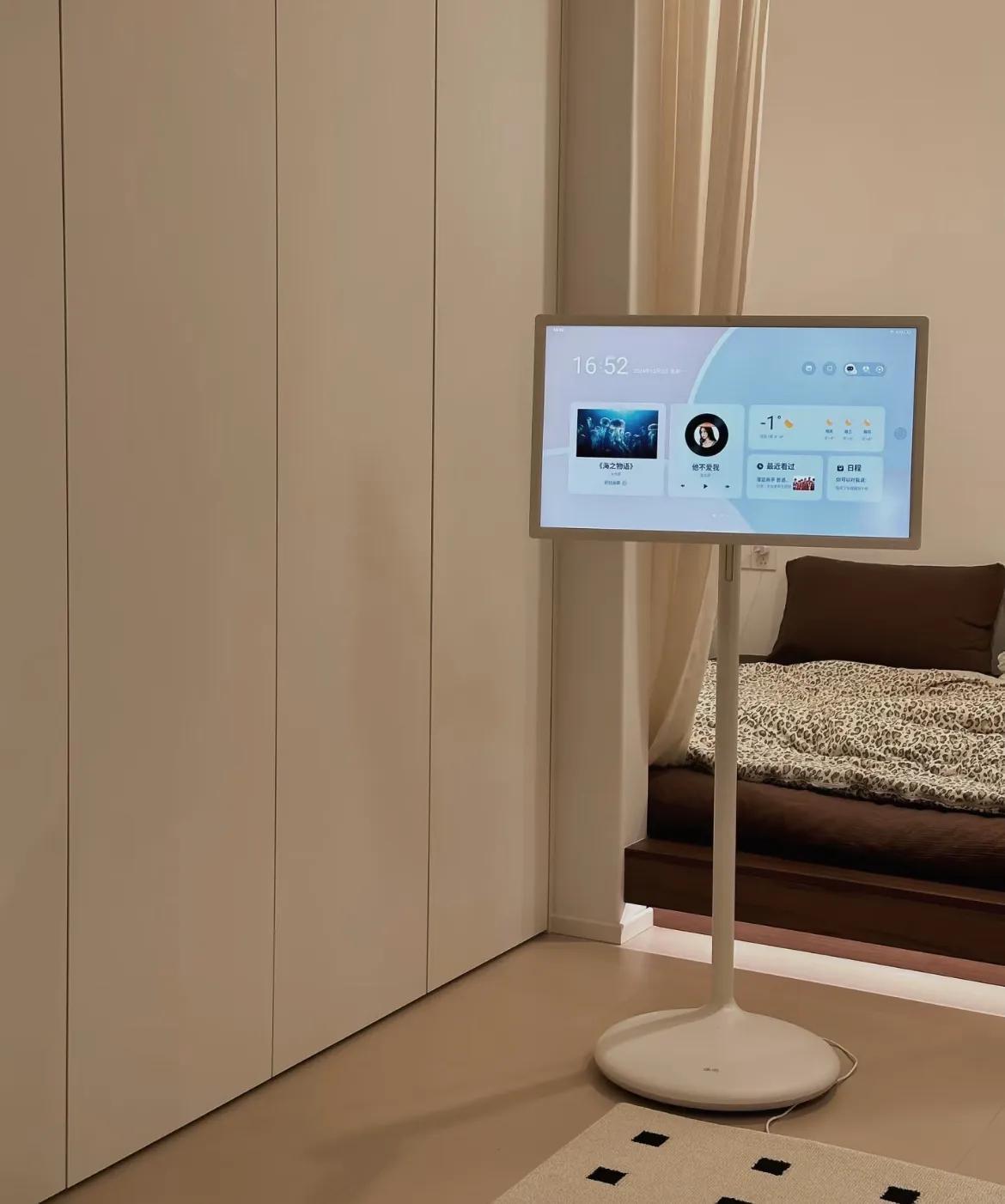 所謂的閨蜜機,其實最早是韓國LG出的,大概在兩年前生產的一款外觀看着像大平板+支架的東西,初代的功能很簡單,就主打追劇,27寸的大屏幕可以180度旋轉。