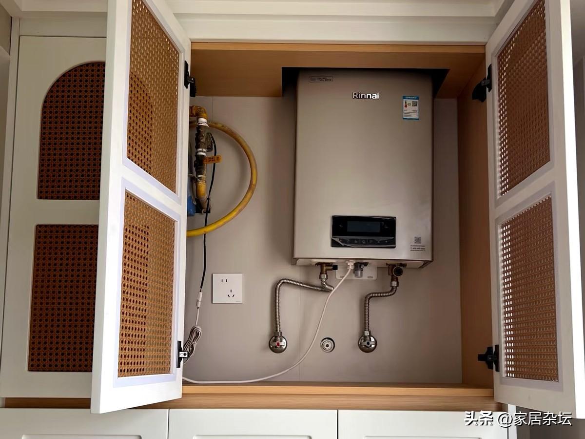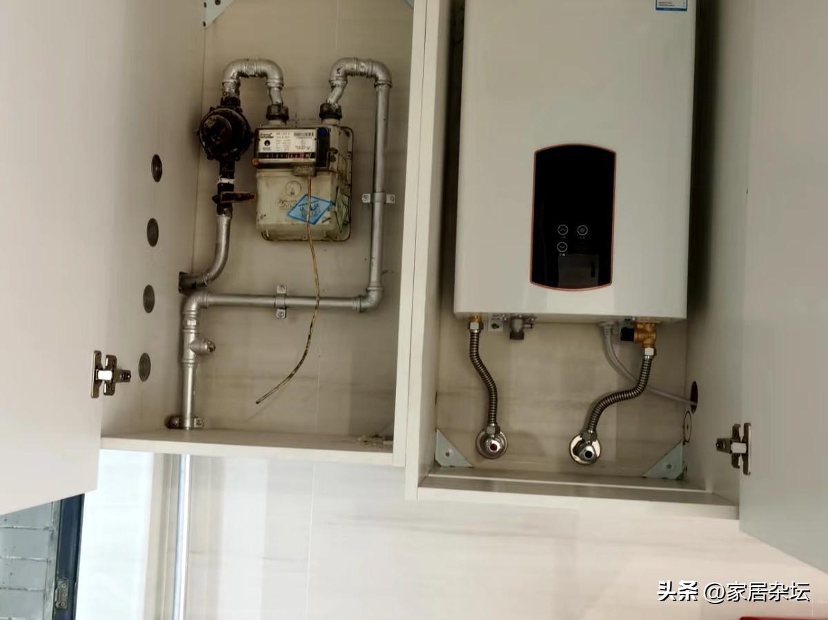 的確,我們把壁掛爐裝櫃子裏,從外觀上來看,更好看了。整個廚房,顯得更乾淨整潔。