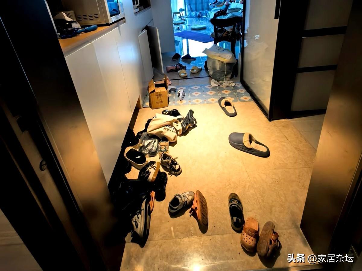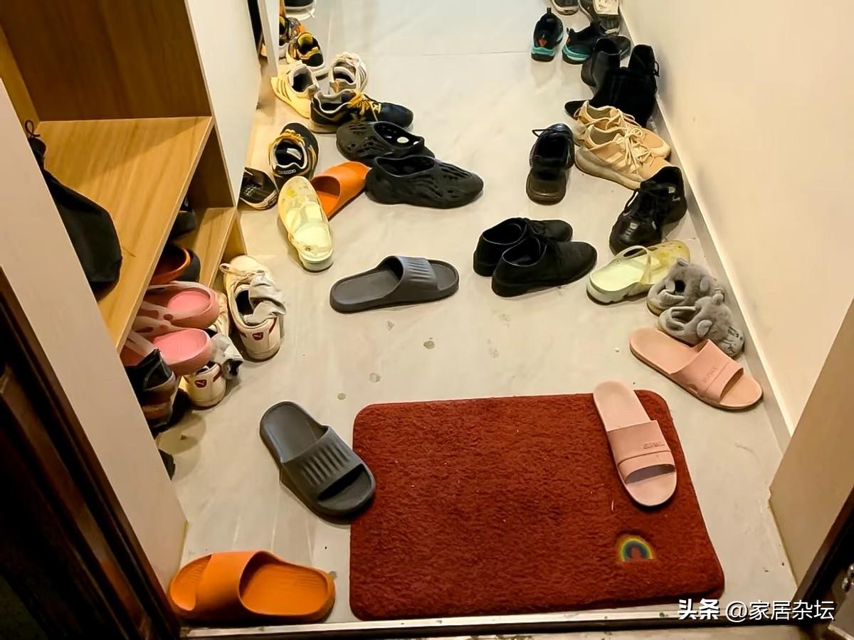 一個家的玄關,亂糟糟斜,鞋的亂七八糟,這個家一般過得不好。