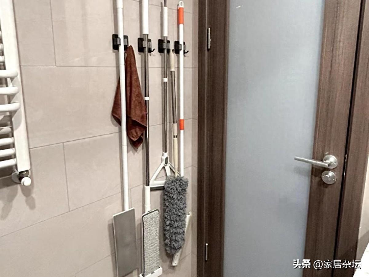 門後收納。我們可以利用衛生間門後的空間,安裝掛鉤,把衛生間的一些工具,都收納在門後。