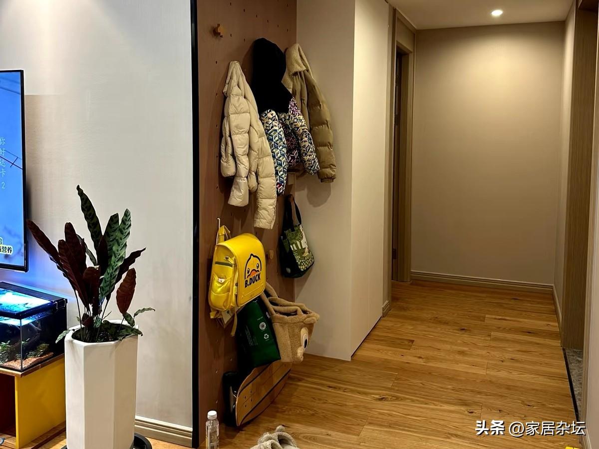 進門脫下的衣服,隨手把它掛在玄關的掛衣區。像外套冬季的羽絨服、大衣。